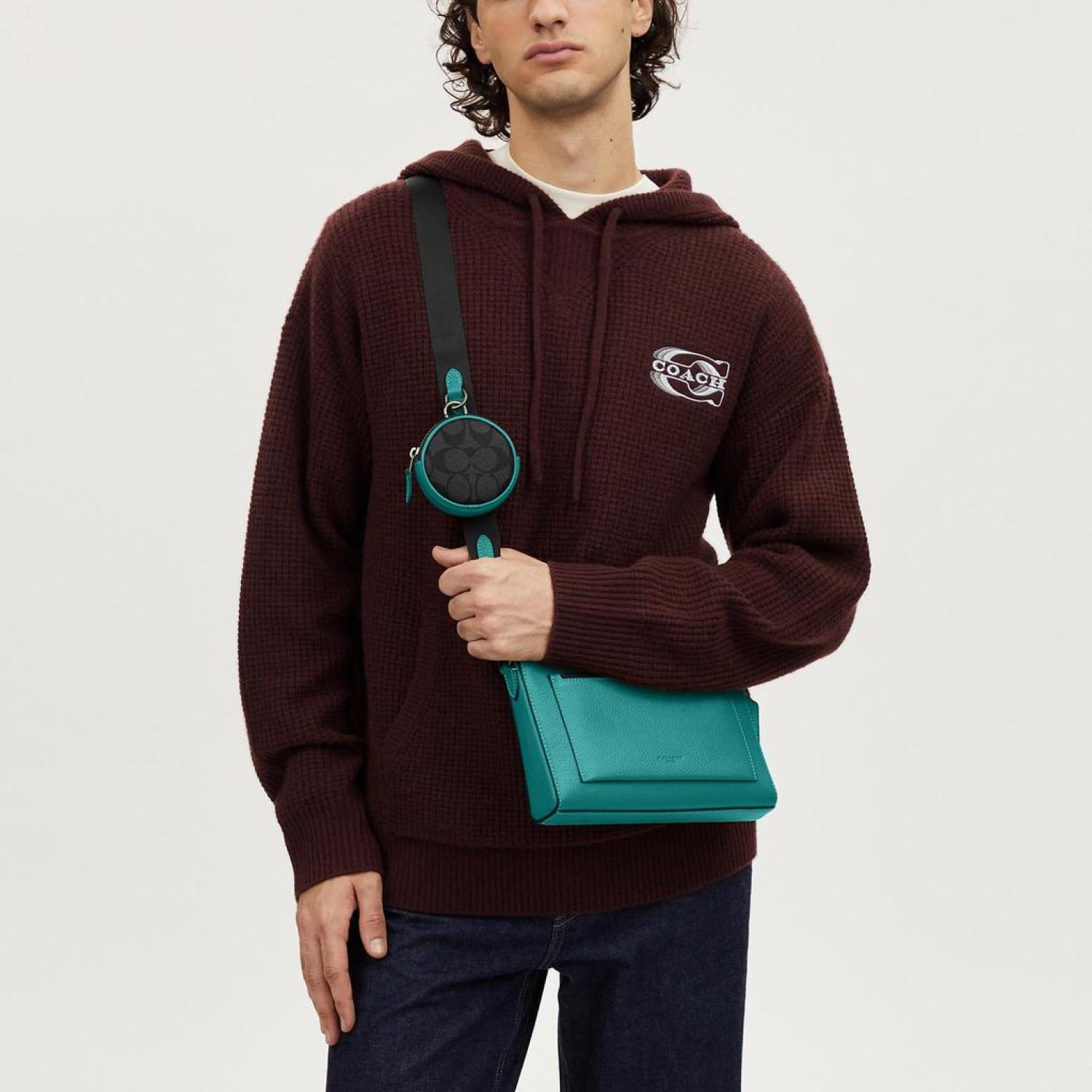 Signature coated canvas and refined pebble leather Zip-top closure fabric lining Detachable chain handle with 4 3/4 drop Outside zip pocket Detachable strap with 24 drop for shoulder or crossbody wear 9 3/4 (L) x 6 (H) x 1 1/2 (W) Detachable round coin case - Zip closure fabric lining 3 1/2 (L) x 3 1/2 (H) x 1 (W) Style No. CP191 | Coach Outlet Holden Crossbody In Colorblock Signature Canvas - Blue