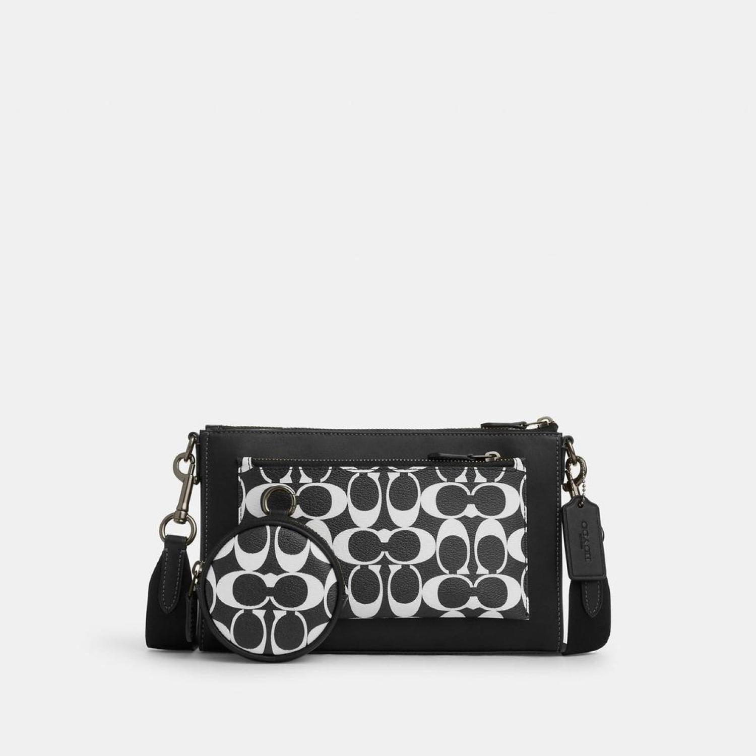Signature coated canvas and smooth calf leather Zip-top closure fabric lining Detachable chain handle with 4 3/4 drop Outside zip pocket Detachable strap with 24 drop for shoulder or crossbody wear 9 3/4 (L) x 6 (H) x 1 1/2 (W) Detachable round coin case - Zip closure fabric lining 3 1/2 (L) x 3 1/2 (H) x 1 (W) Style No. CP192 | Coach Outlet Holden Crossbody In Signature Canvas - Multi