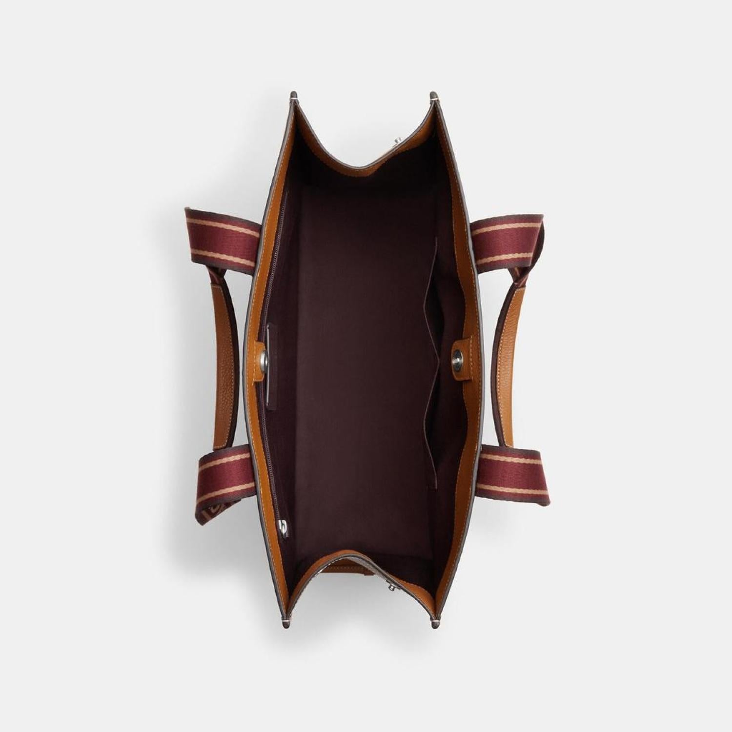 Refined pebble leather Inside zip and multifunction pockets Snap closure fabric lining Handles with 10 1/2 drop Outside open pocket 16 1/2 (L) x 12 (H) x 6 (W) Style No. CM716 | Coach Outlet Large Smith Tote - Brown