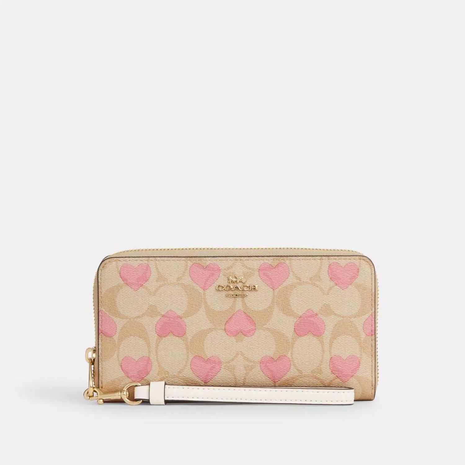 Coach Outlet Long Zip Around Wallet In Signature Canvas With Heart Print