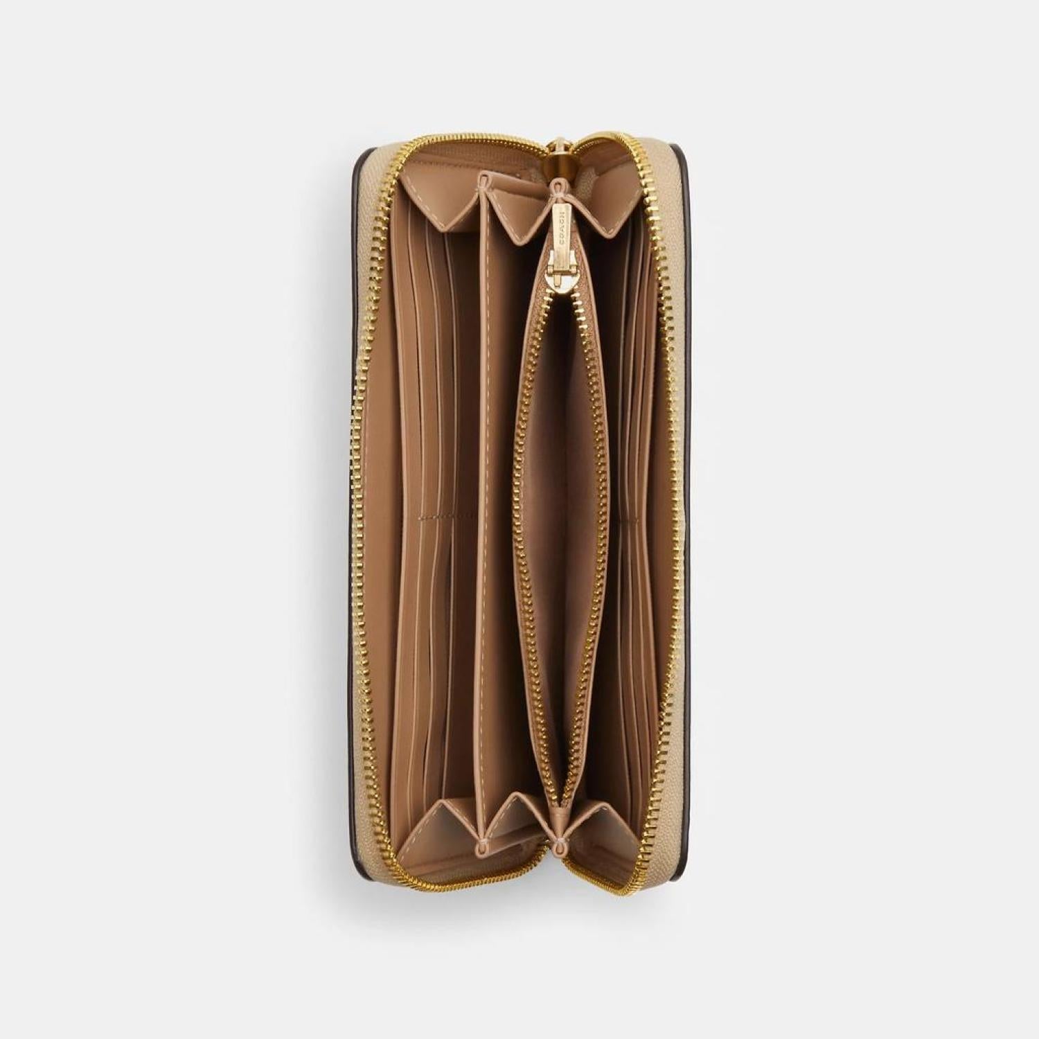 Signature coated canvas and smooth leather 12 credit card slots Full-length bill compartments Inside zip coin pocket Zip-around closure Detachable wrist strap 7 1/2 (L) x 4 (H) x 1 (W) Fits all iPhone and Samsung Galaxy phones Style No. CQ147 | Coach Outlet Long Zip Around Wallet In Signature Canvas With Heart Print - Multi