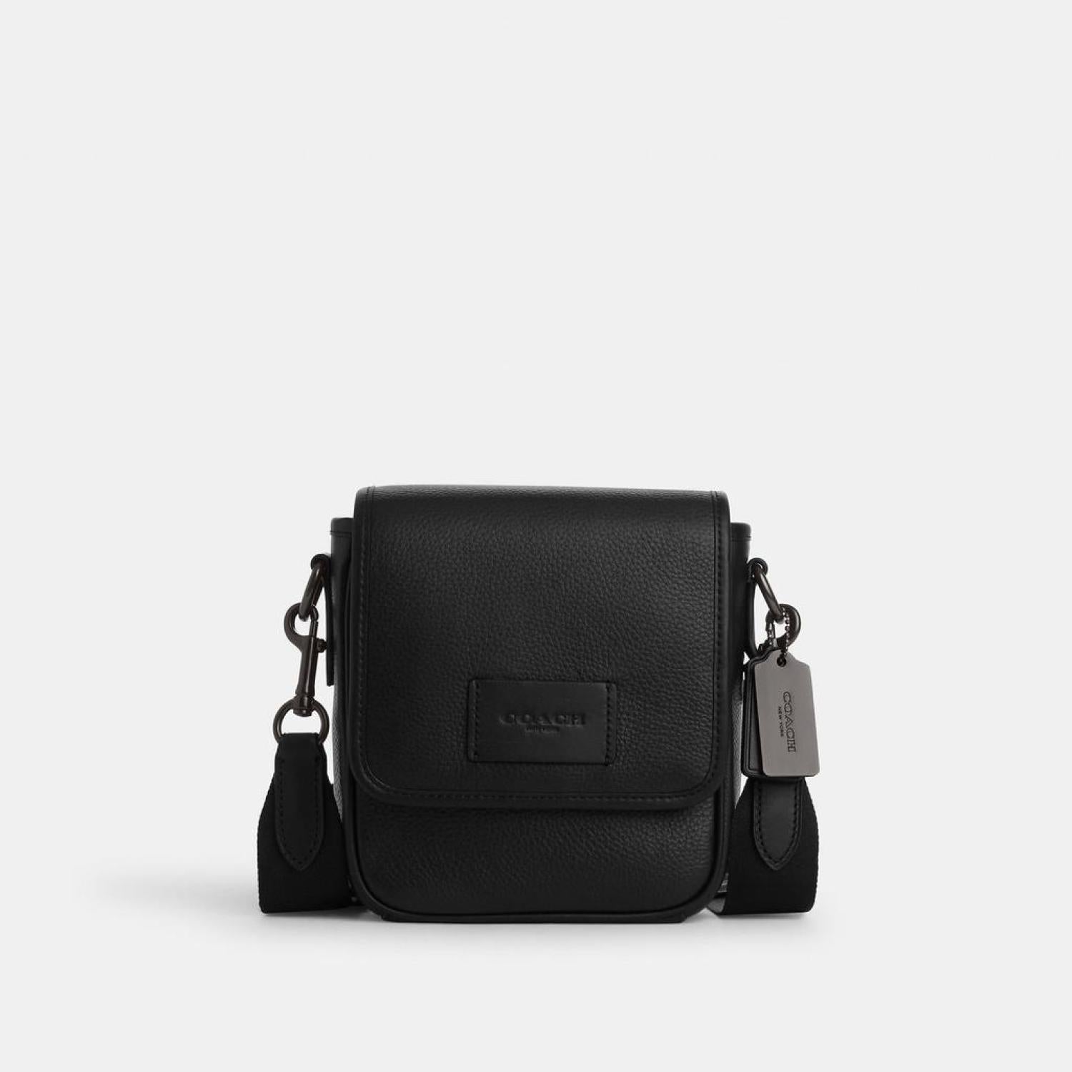 • Refined pebble leather and smooth calf leather Inside multifunction pocket Magnetic snap closure fabric lining Detachable strap with 25 drop for shoulder or crossbody wear 6 (L) x 6 3/4 (H) x 2 1/2 (W) Style No. CO914 | Coach Outlet Lucas Crossbody - Black