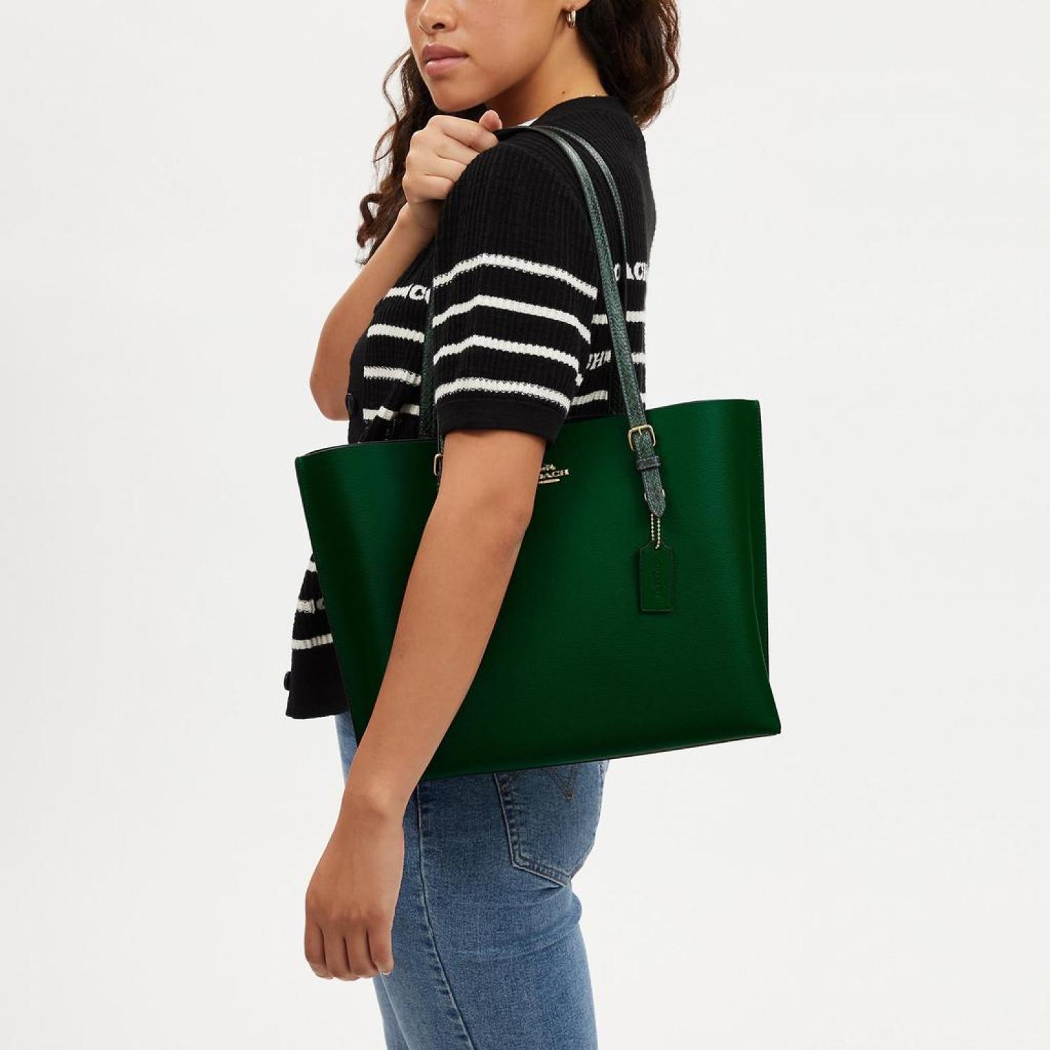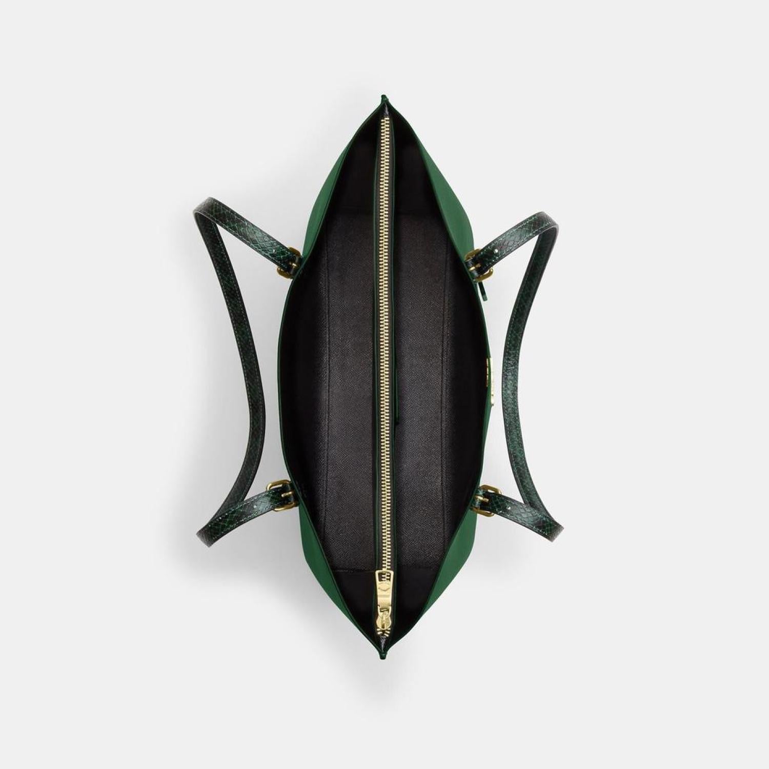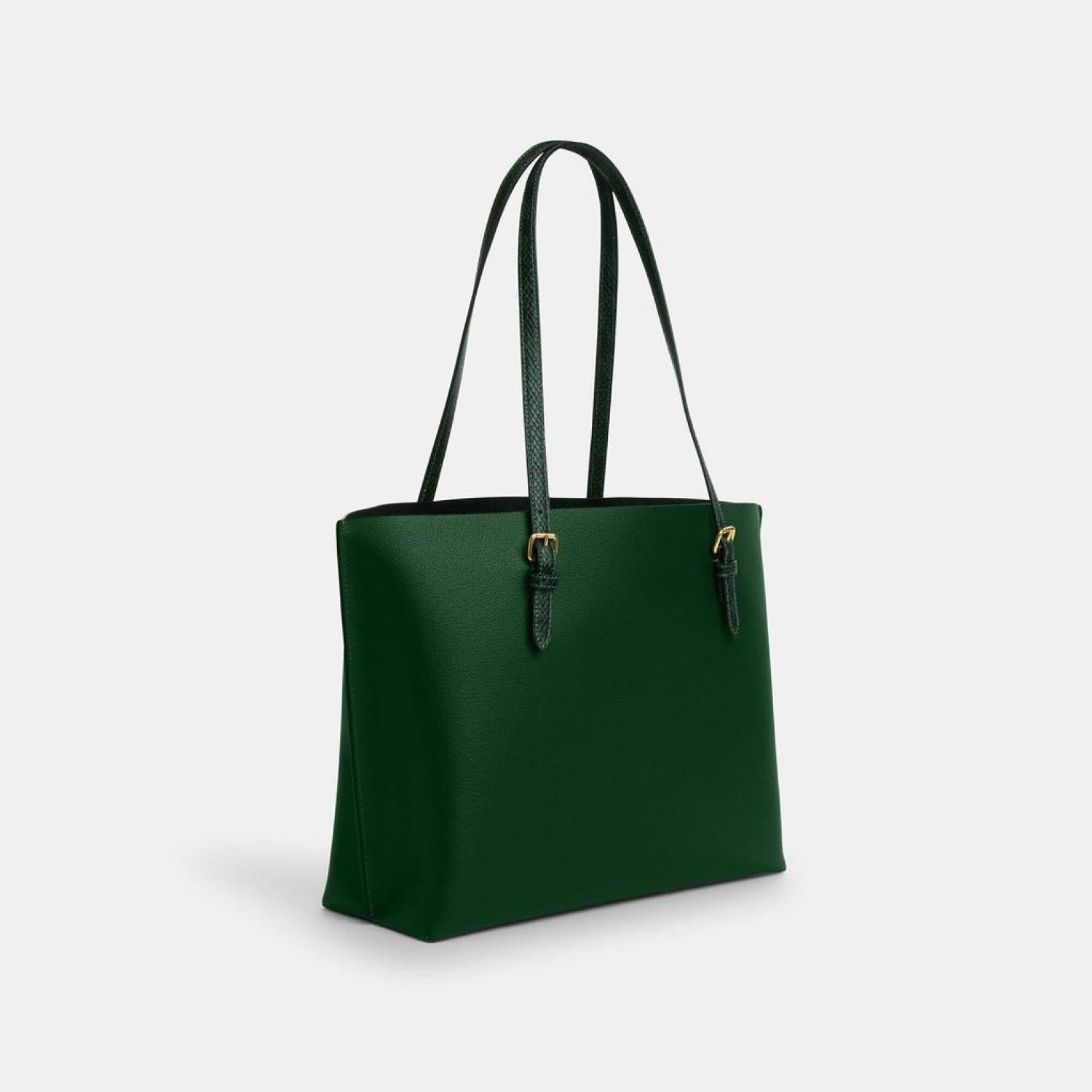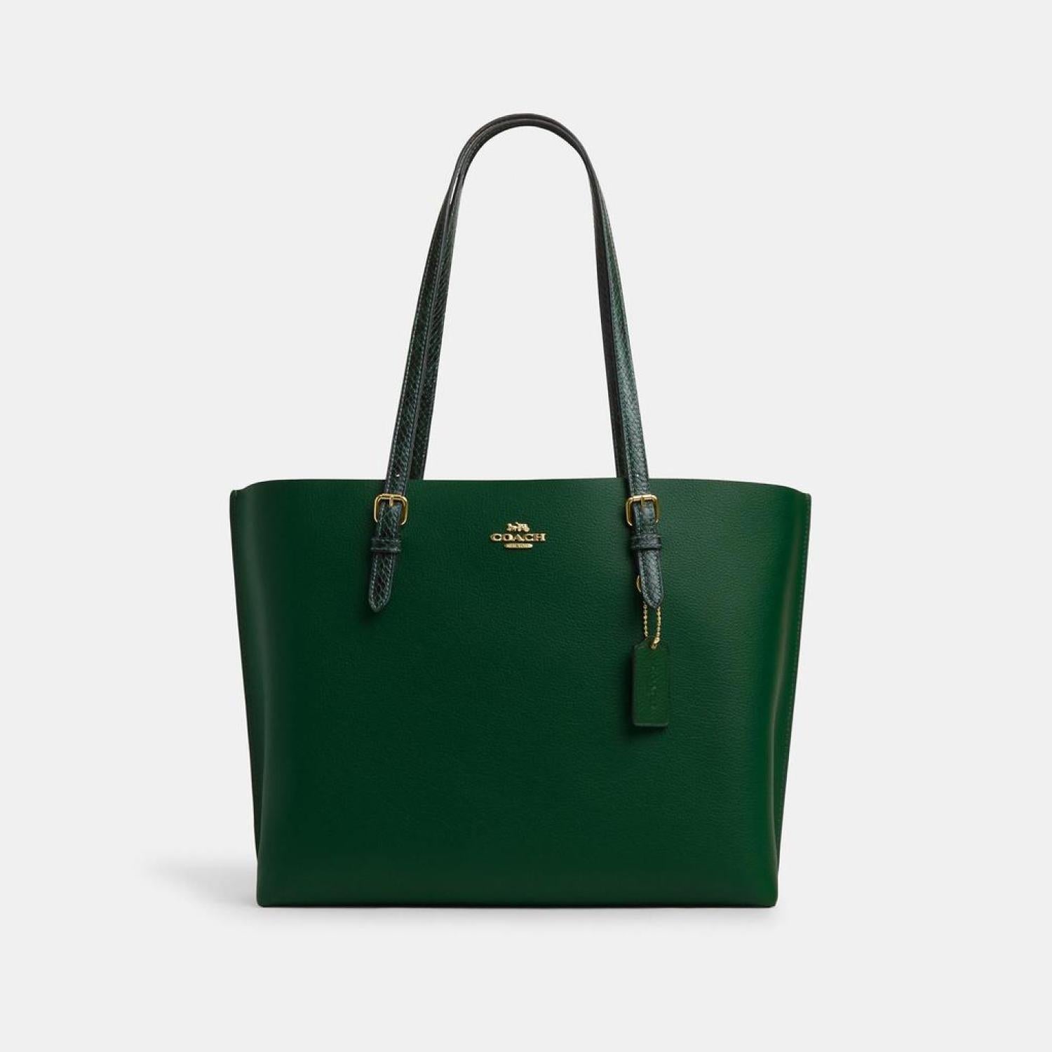 Double face leather and snake-embossed leather Inside multifunction pocket Zip-top closure fabric lining Handles with 10 1/4 drop Side open compartments 13 1/4 (L) x 11 (H) x 5 (W) Style No. CM744 | Coach Outlet Mollie Tote - Green