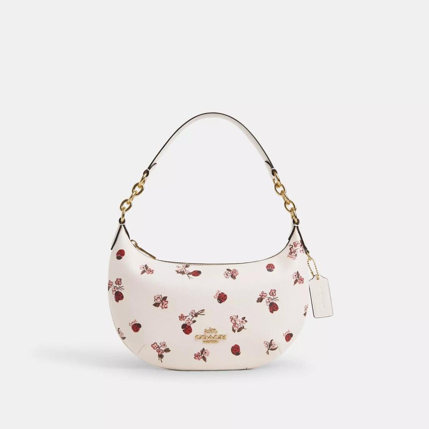 Printed coated canvas and smooth leather Inside multifunction pocket Zip-top closure fabric lining Strap with 8 1/4 drop 10 3/4 (L) x 6 1/4 (H) x 1 (W) Style No. CU270 | Coach Outlet Payton Hobo With Ladybug Floral Print - White