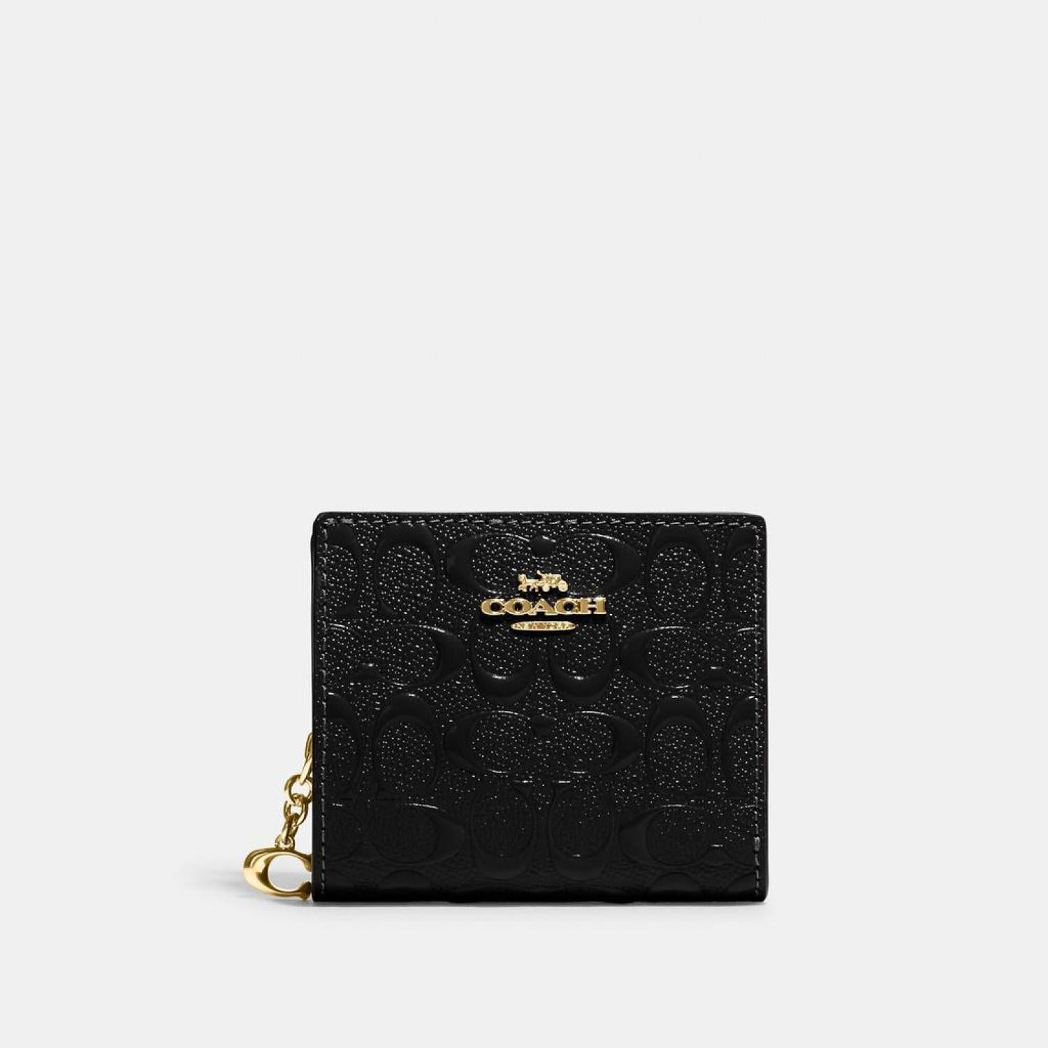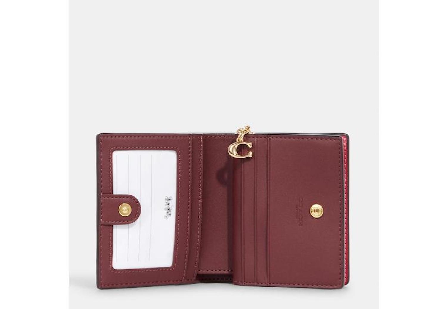 Signature patent leather and smooth leather Three credit card slots ID window Full-length bill compartment Snap closure Outside zip coin pocket 4 1/4 (L) x 3 1/2 (H) x 1 (W) Style No. CH594 | Coach Outlet Snap Wallet In Signature Leather - Pink