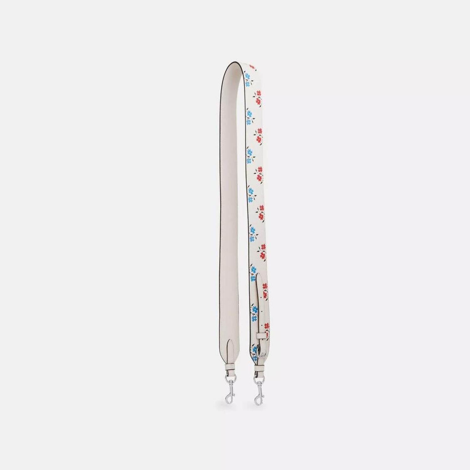 Refined pebble leather Adjustable 45 1/4 (L) x 1 1/2 (H) Style No. CU241 | Coach Outlet Strap With Floral Print - Silver/Chalk Multi