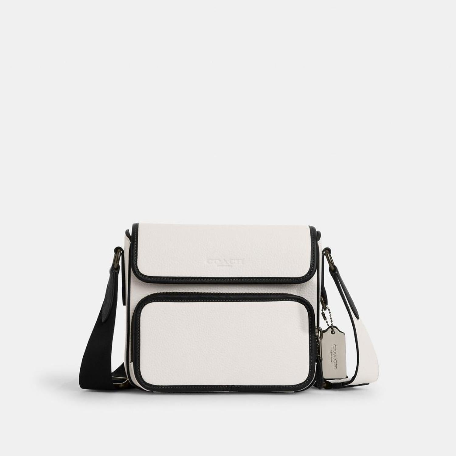 • Refined pebble leather Inside multifunction pockets Zip and magnetic snap closures fabric lining Outside zip and open pockets Adjustable strap with 25 drop for shoulder or crossbody wear 7 3/4 (L) x 6 3/4 (H) x 3 1/2 (W) Style No. CP043 | Coach Outlet Sullivan Flap Crossbody - Multi