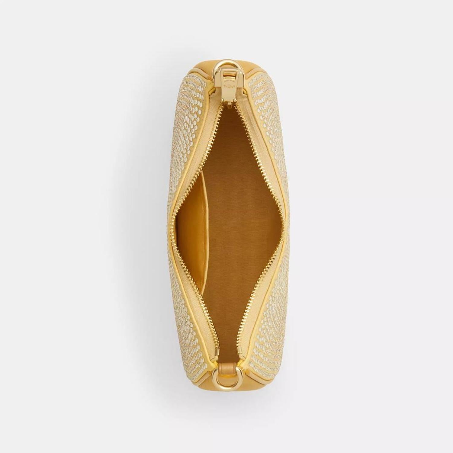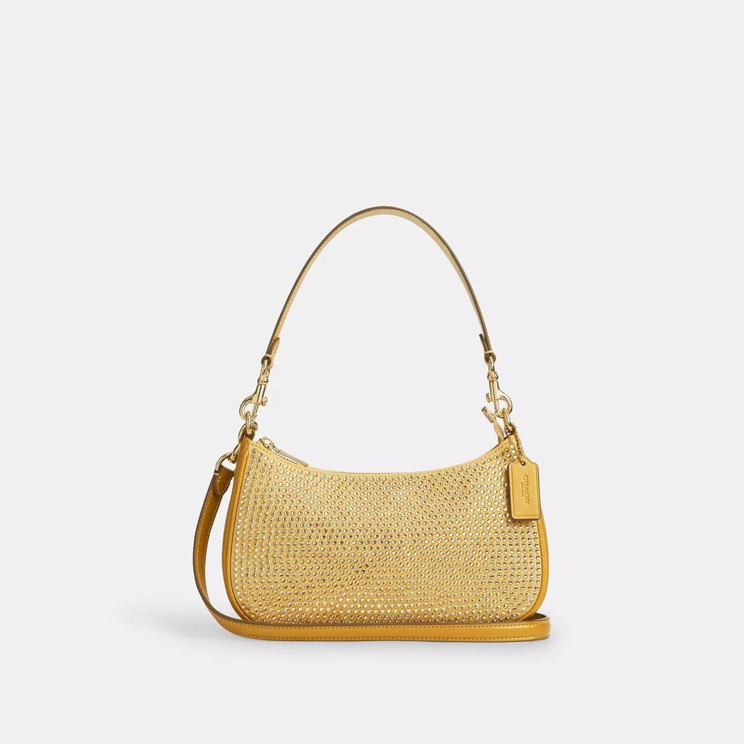 Crystal fabric and smooth leather Inside multifunction pocket Zip-top closure fabric lining Detachable handle with 8 1/2 drop Detachable strap with 22 3/4 drop for shoulder or crossbody wear 9 1/2 (L) x 6 (H) x 3 (W) Style No. CV937 | Coach Outlet Teri Shoulder Bag - Yellow