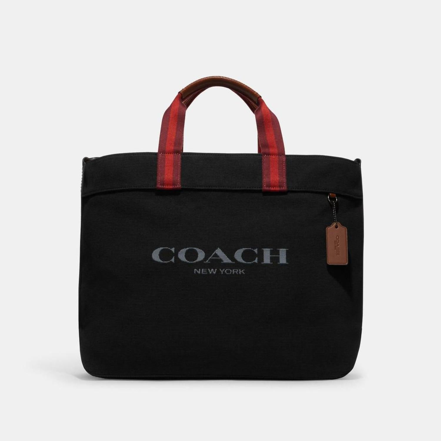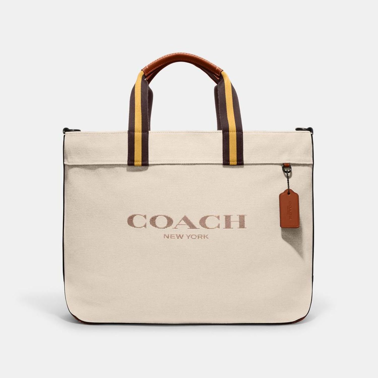 Canvas and smooth leather Inside multifunction pocket Zip-top closure fabric lining Handles with 6 drop Detachable strap with 21 3/4 drop for shoulder or crossbody wear 15 (L) x 13 1/2 (H) x 7 (W) Style No. CJ486 | Coach Outlet Canvas Tote 38 - Blue