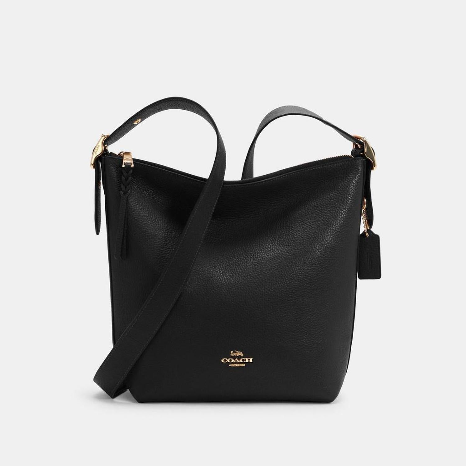 • Refined pebble leather Inside zip cell phone and multifunction pockets Zip-top closure fabric lining Outside zip pocket Adjustable strap with 21 drop for shoulder or crossbody wear 9 (L) x 11 1/4 (H) x 4 1/2 (W) Style No. C2818
