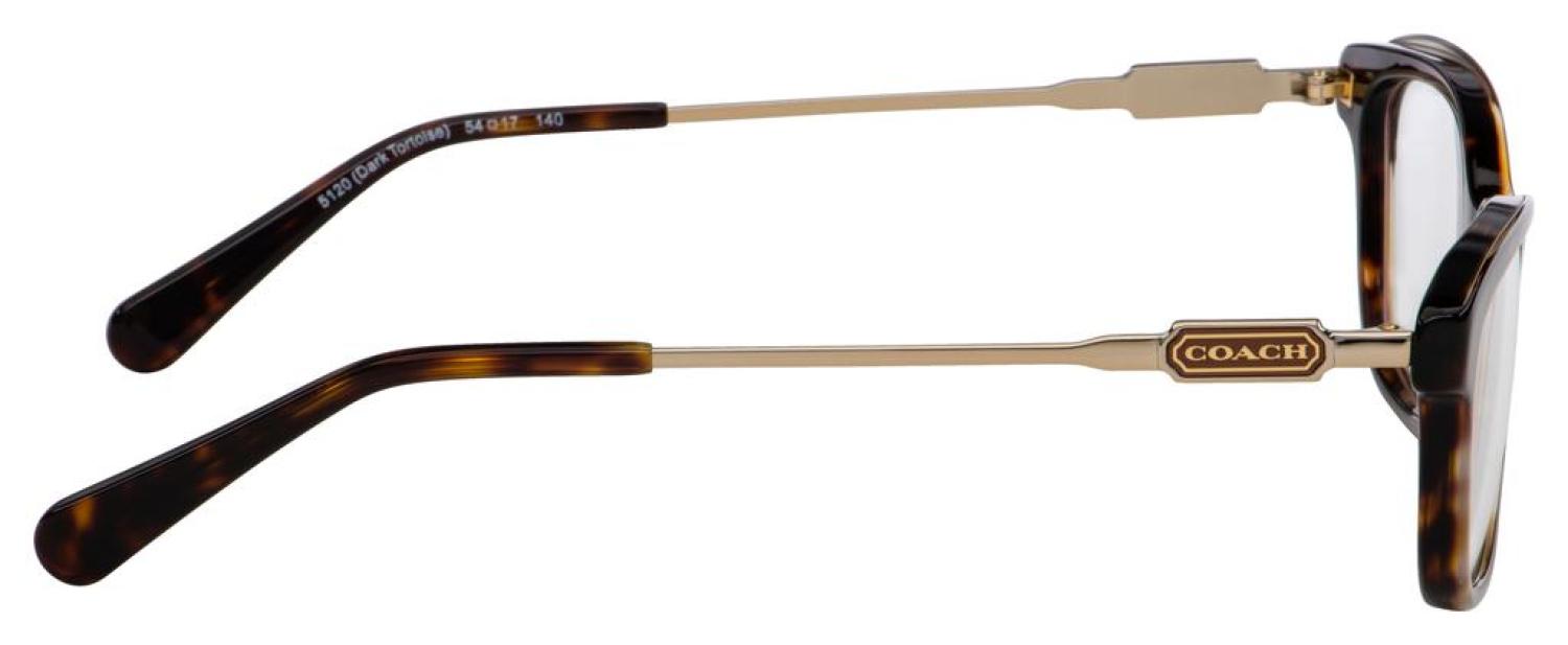 • The Coach unisex Opticals measure at 54 mm lens width, 17 mm bridge width, and 140 mm arm length. The frame is rectangular-shaped dark tortoise metal and plastic. Made in China (HC6163-5120-54)