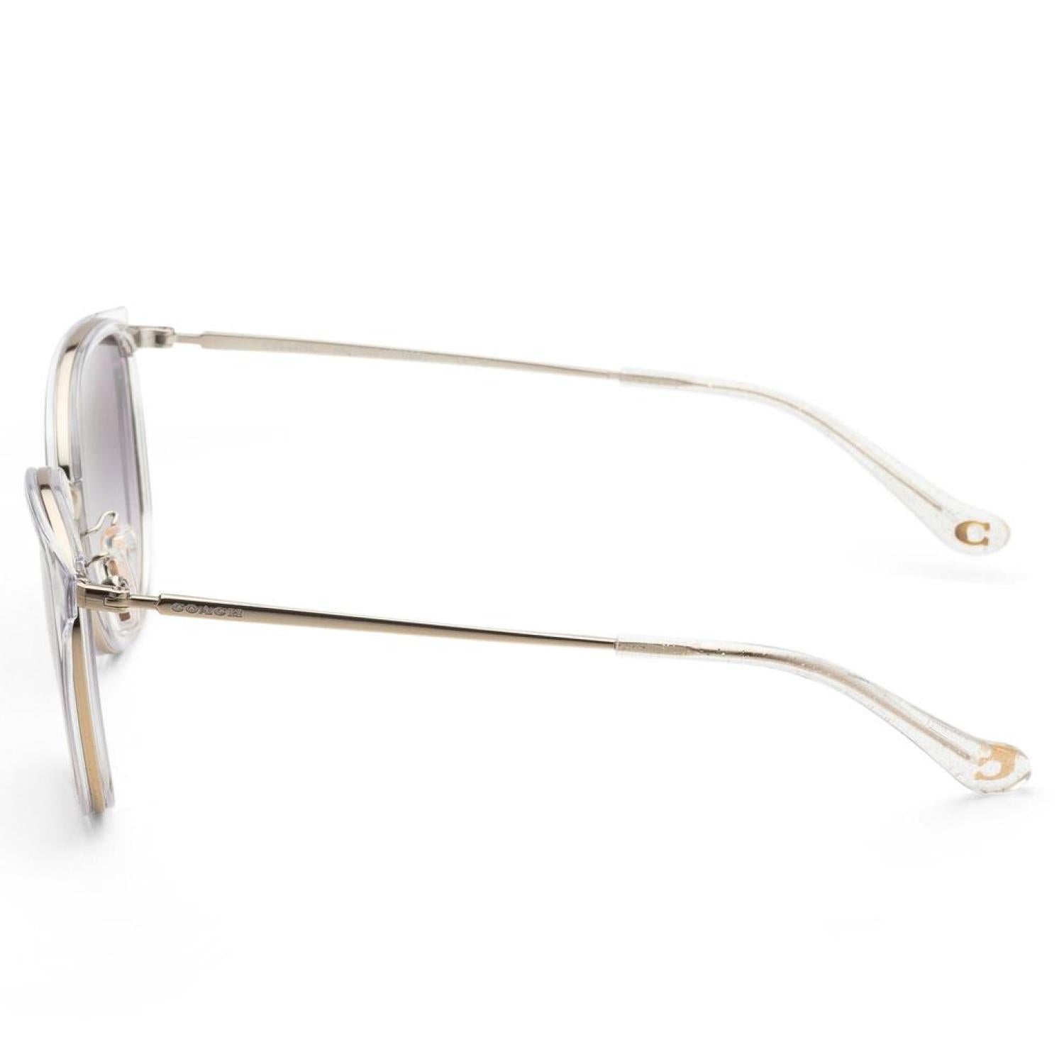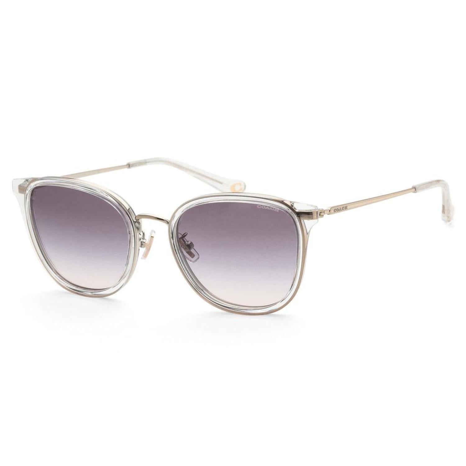 Coach Women's Sunglasses. Dimensions - 54 mm x 20 mm x 140 mm. Light Gold Square Metal frame, Purple Pink Gradient lenses. 100% UV Protection, Non-Polarized. Made in China. (HC7135-511136-54)