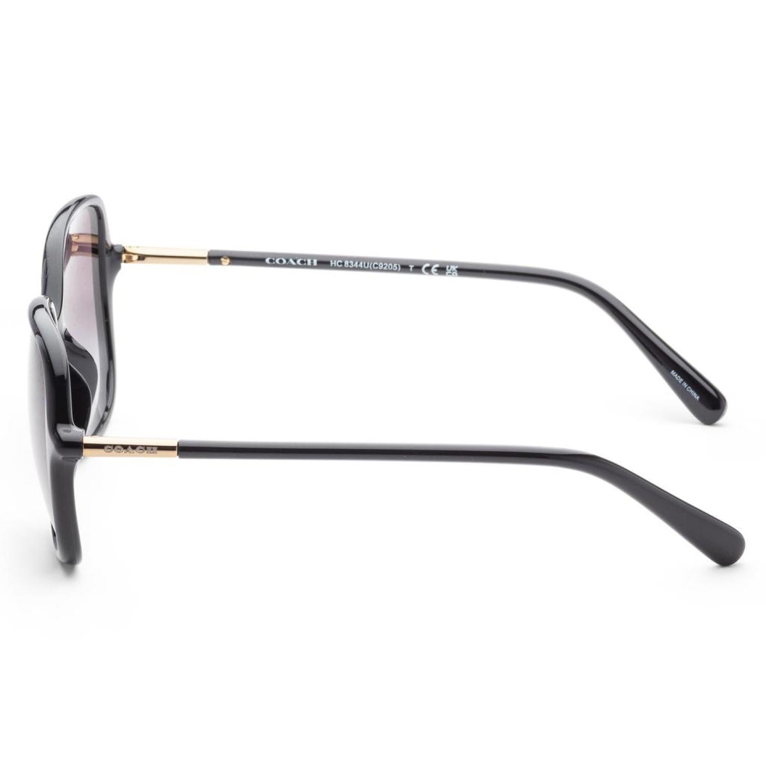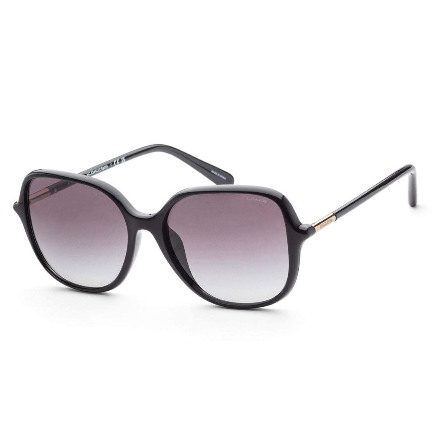 Coach Women's Sunglasses. Dimensions - 55 mm x 16 mm x 145 mm. Black Square Plastic frame, Grey Gradient lenses. 100% UV Protection, Non-Polarized. Made in China. (HC8344U-50028G-55)