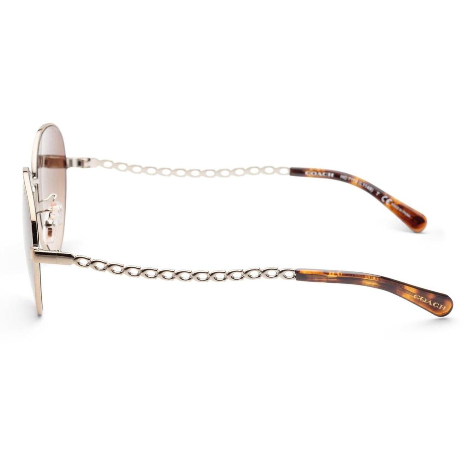 Dimensions - 56 mm x 18 mm x 140 mm. The frame is Metal Aviator shaped. The frame is Light Gold and the lens is Darkbrowngradient.