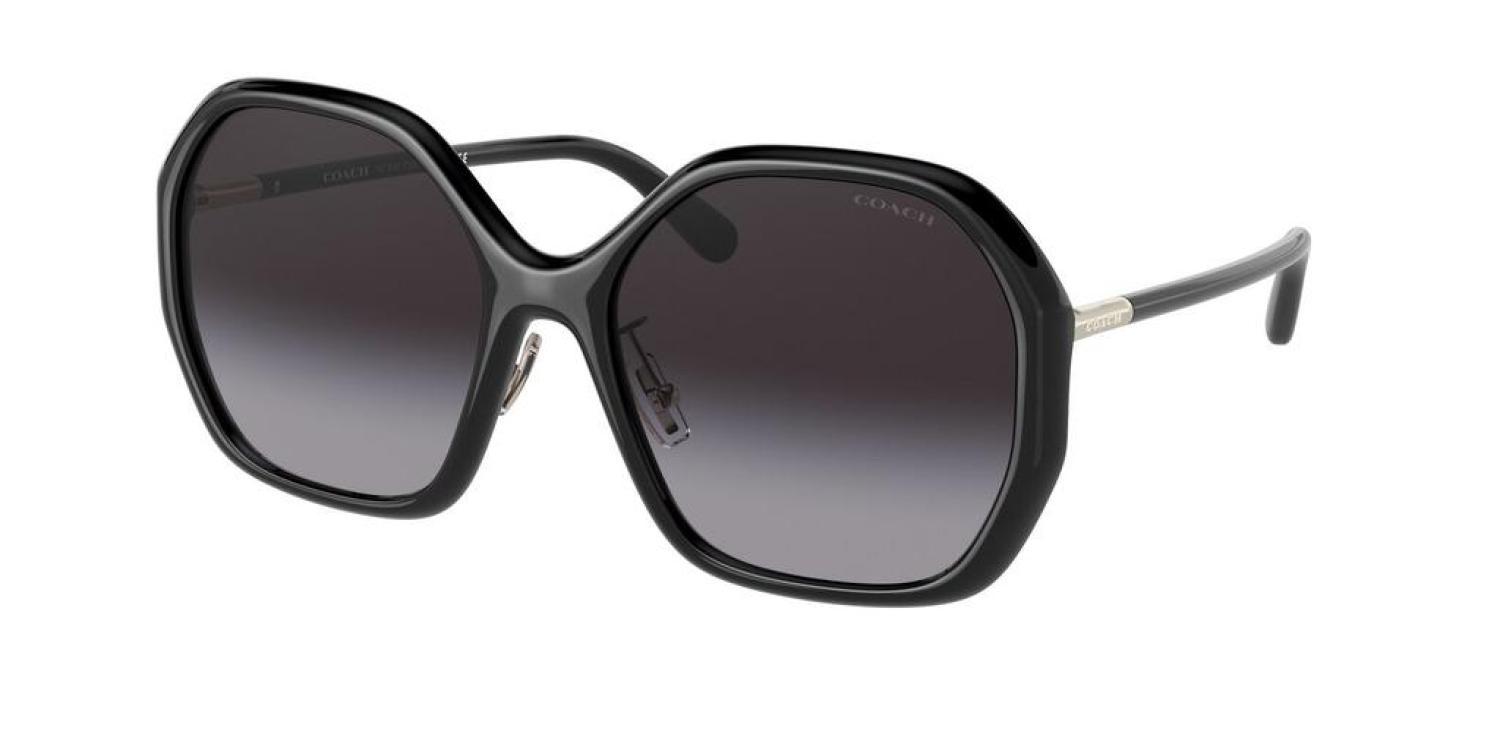 Dimensions - 57 mm x 18 mm x 145 mm. The frame is Plastic Irregular shaped. The frame is Black and the lens is Grey Gradient.