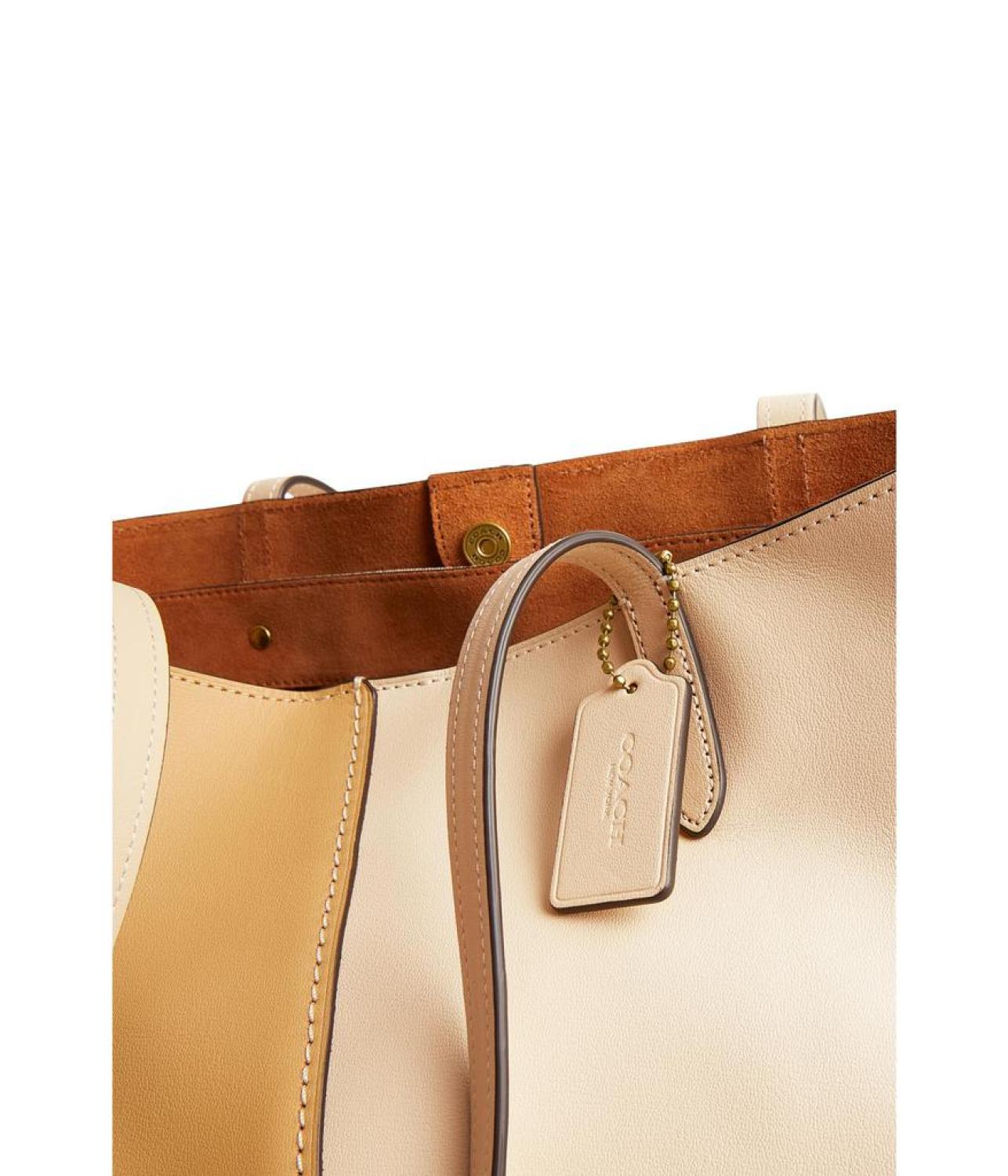 Spacious and stylish, the COACH™ Color-Block Nomad Tote is perfect to elevate your everyday look. The two-tone bag has a statement open silhouette with two carry handles for easy carry while the tag on the handle adds a stylish touch to the bag, making it a perfect addition to your collection.