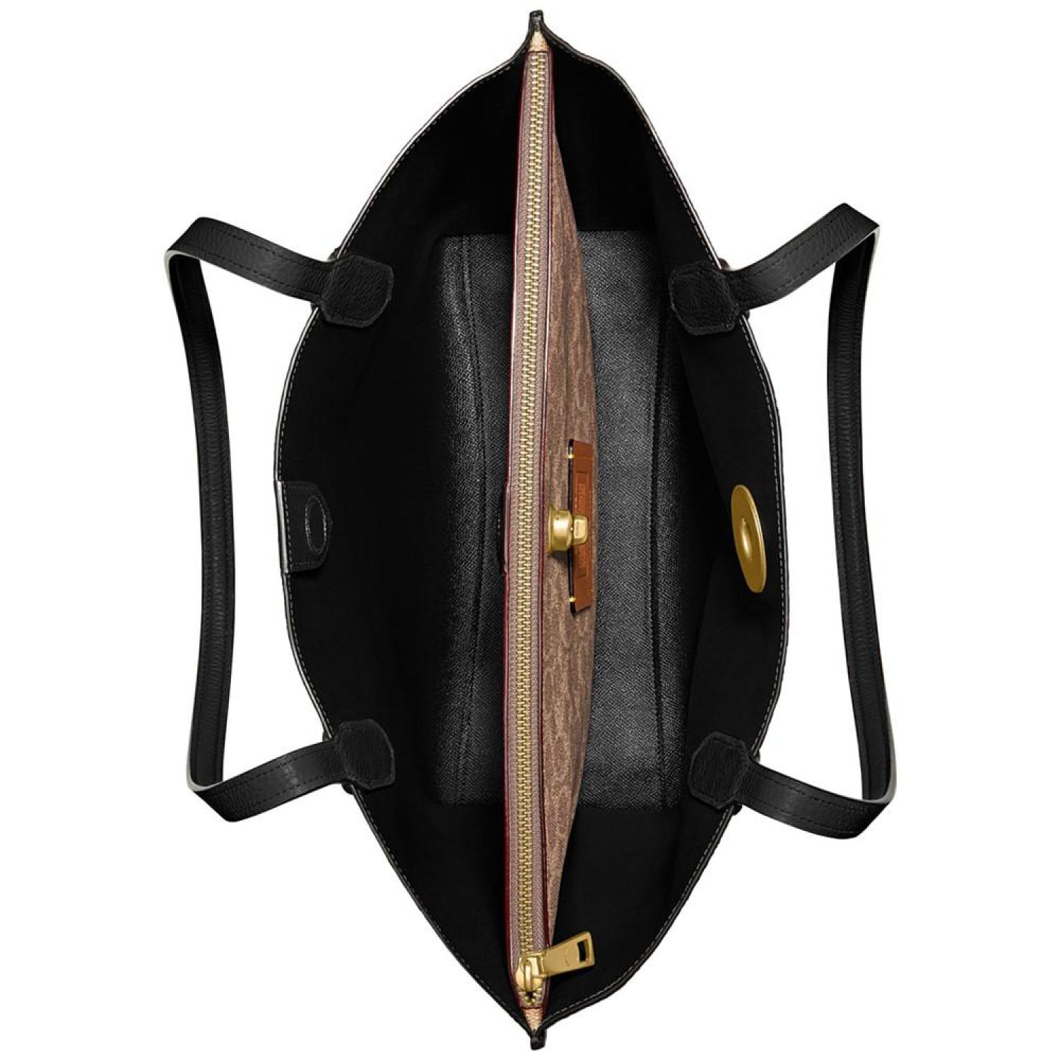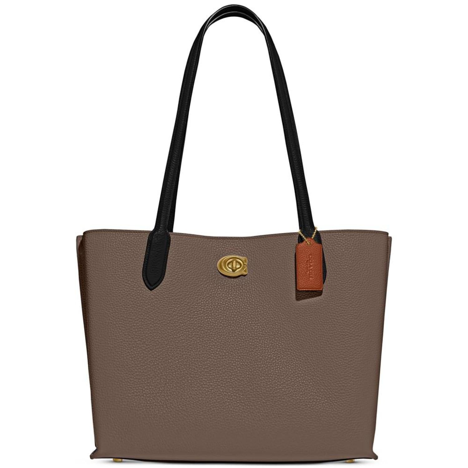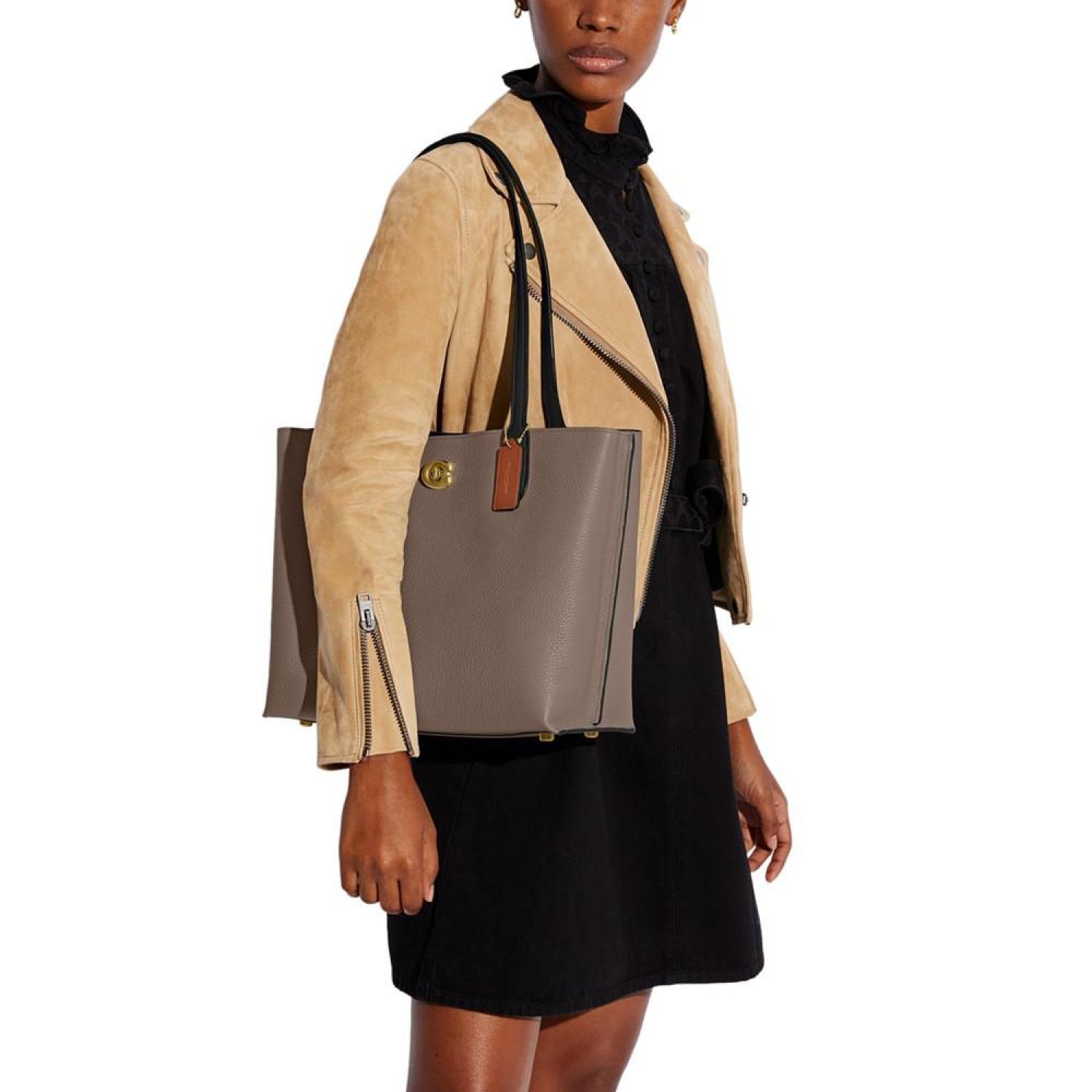 • Not too big, not too small, Willow is the perfect carry-it-all tote with space for all of your day-to-day essentials. Crafted of colorblock polished pebble leather and our Signature canvas, it features two open pockets, a secure center zip compartment and slender shoulder straps designed with a longer drop to fit comfortably over coats. Finished with our Signature turnlock closure, it fits up to a 13" laptop.