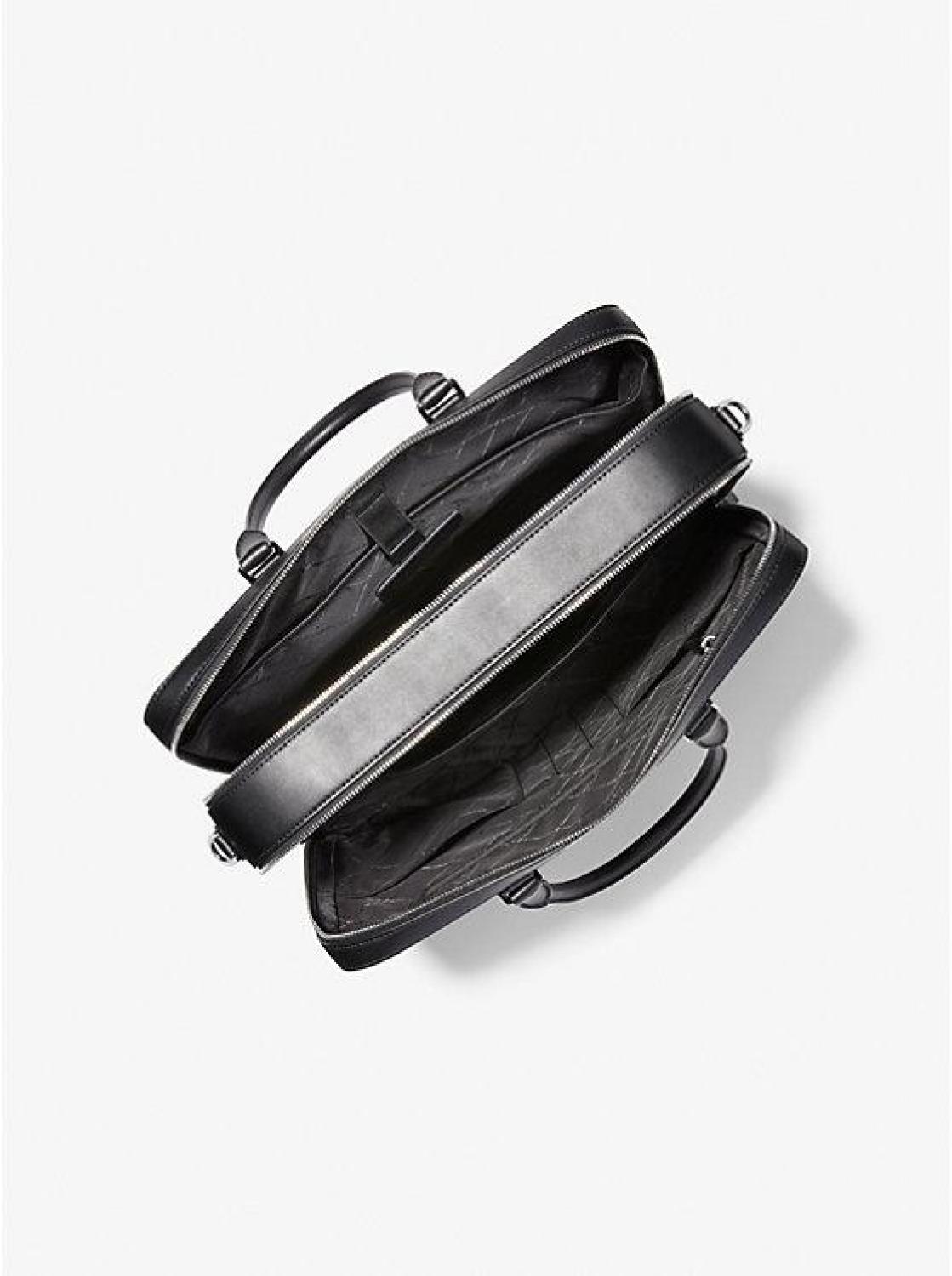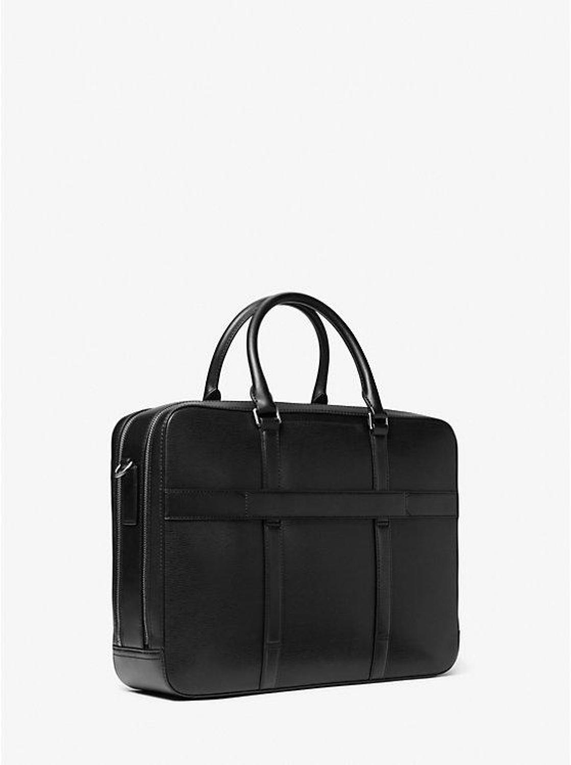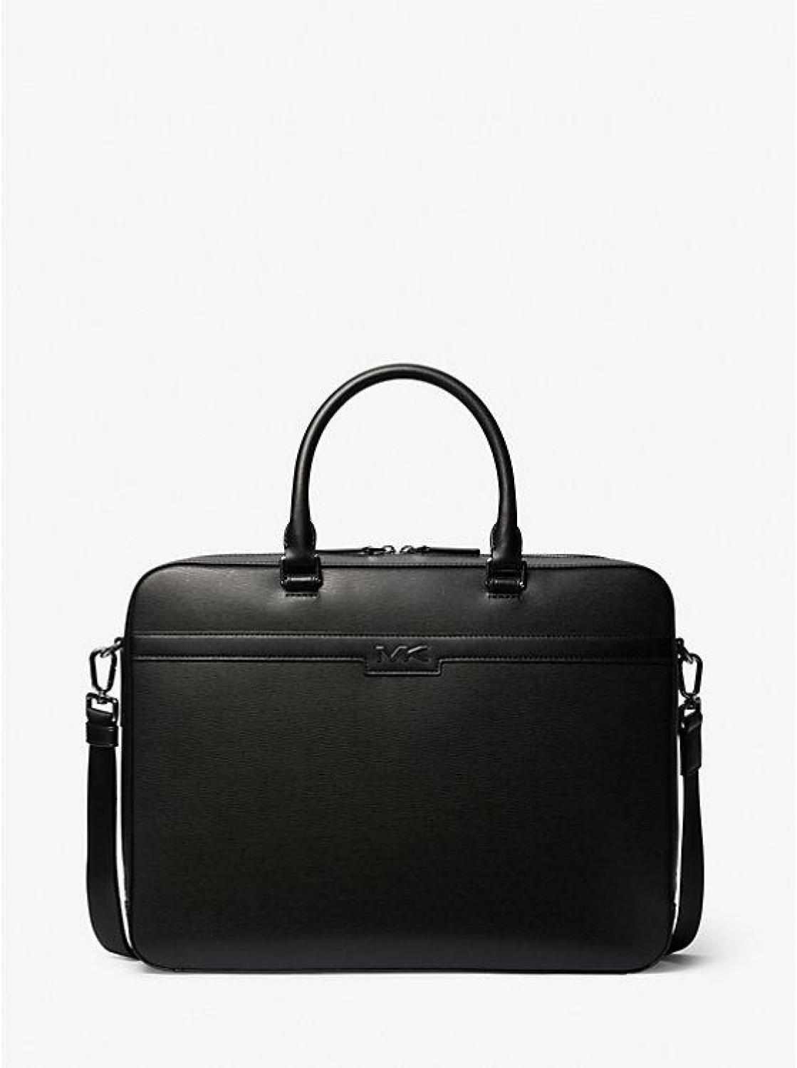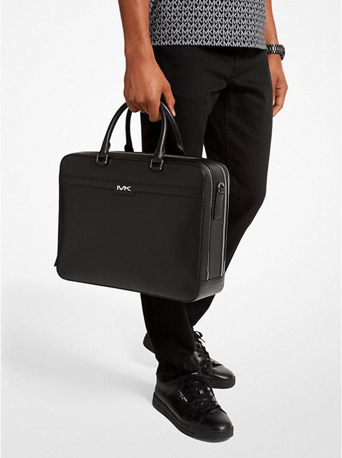 Cooper Textured Faux Leather Double-Gusset Briefcase