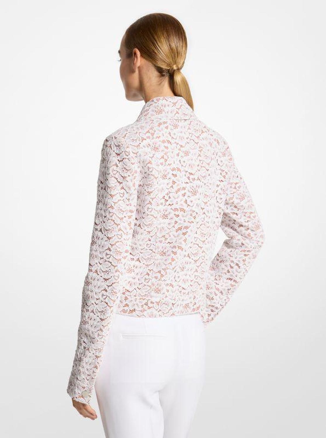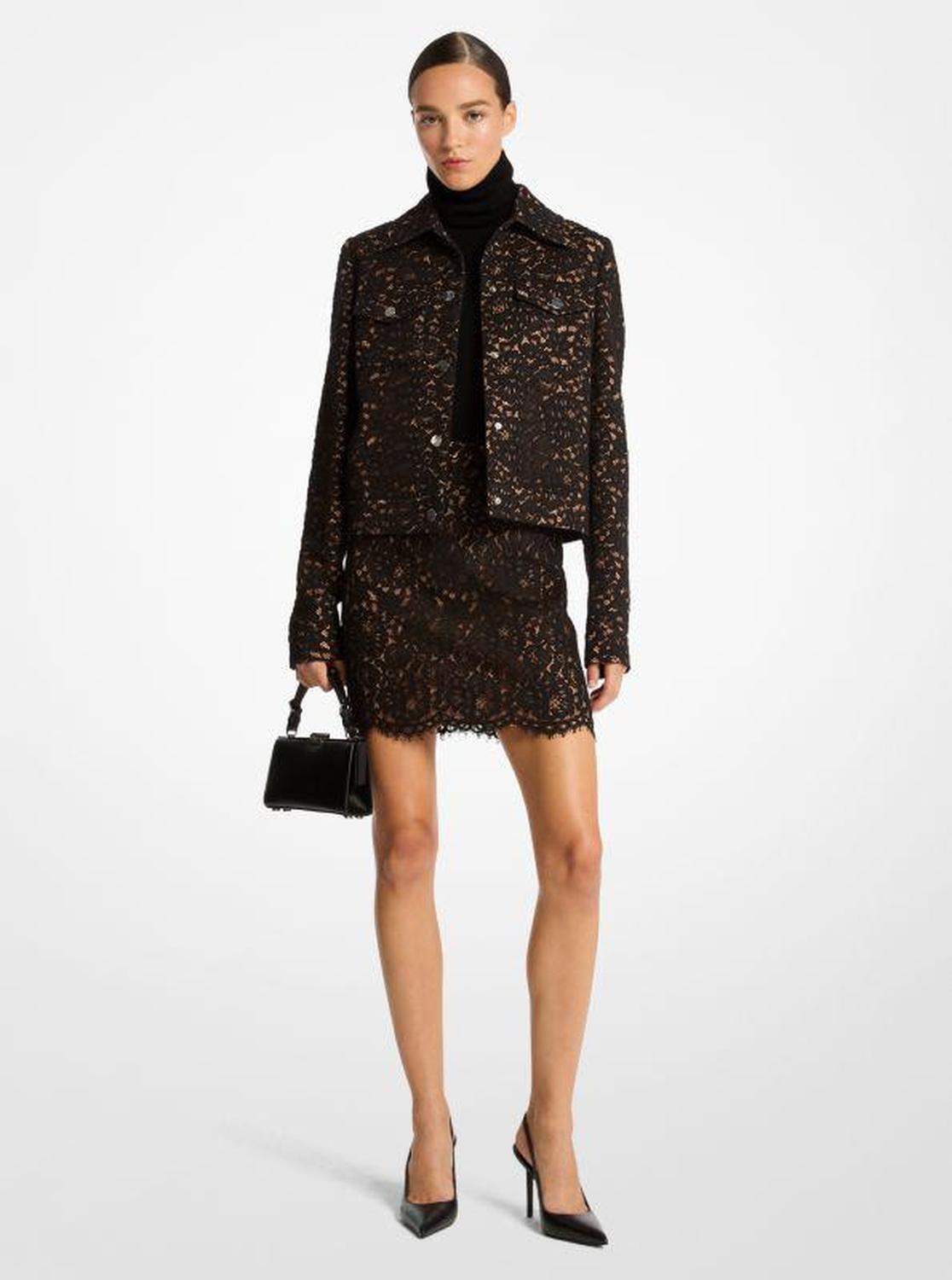 • Corded floral lace offers a sophisticated and refreshing take on the ubiquitous jean jacket. This Italian-crafted masterpiece is detailed with two front pockets and snap buttons, ensuring it’s as functional as it is fashionable.