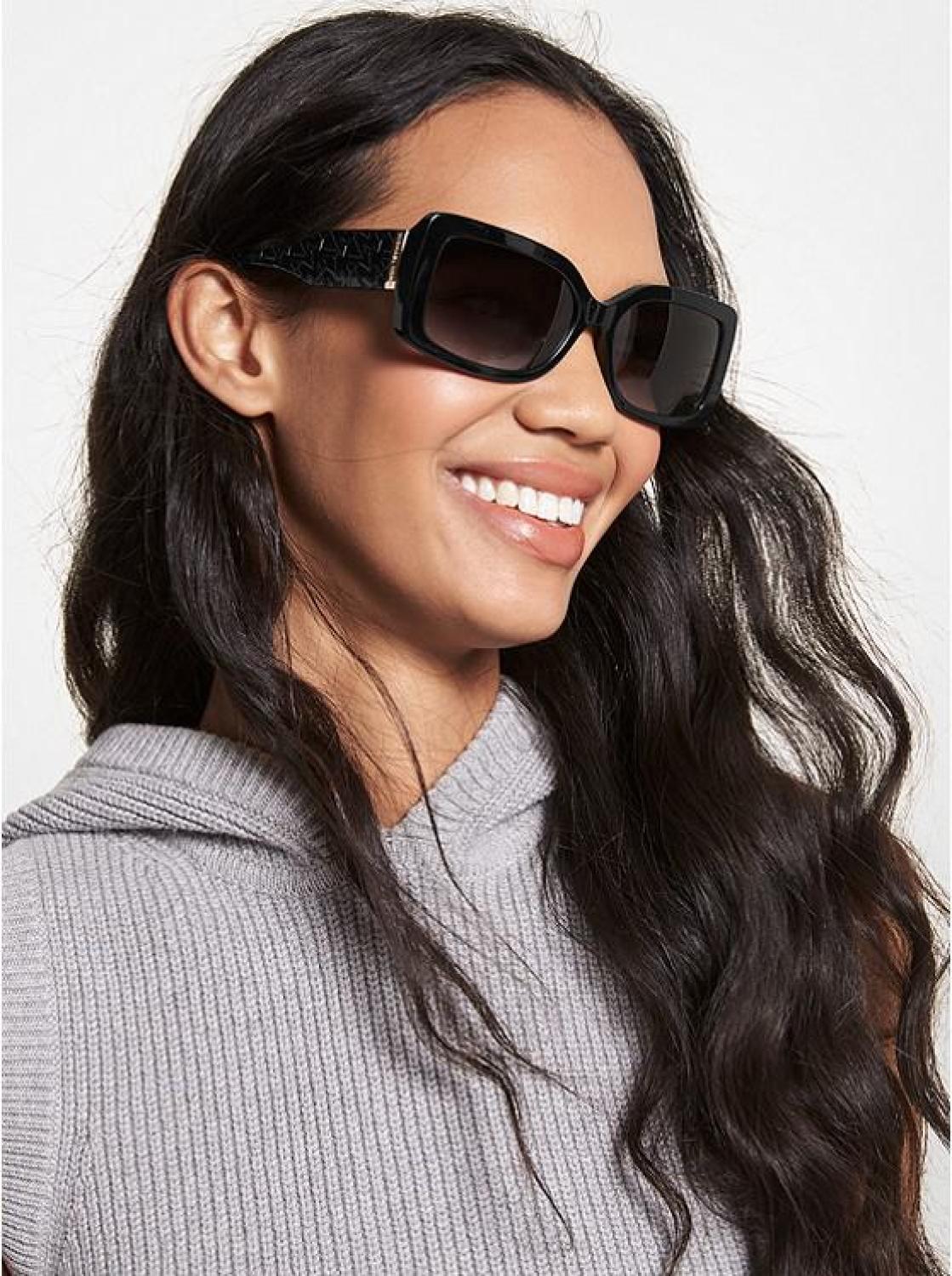 • Evoke “It Girl” confidence with our ultra-chic Corfu sunglasses. Embossed with the brand’s initials for a bold twist, they’re designed in a rectangular shape with subtle metallic accents for an eye-catching finish. Pack them for your next jet-set adventure.