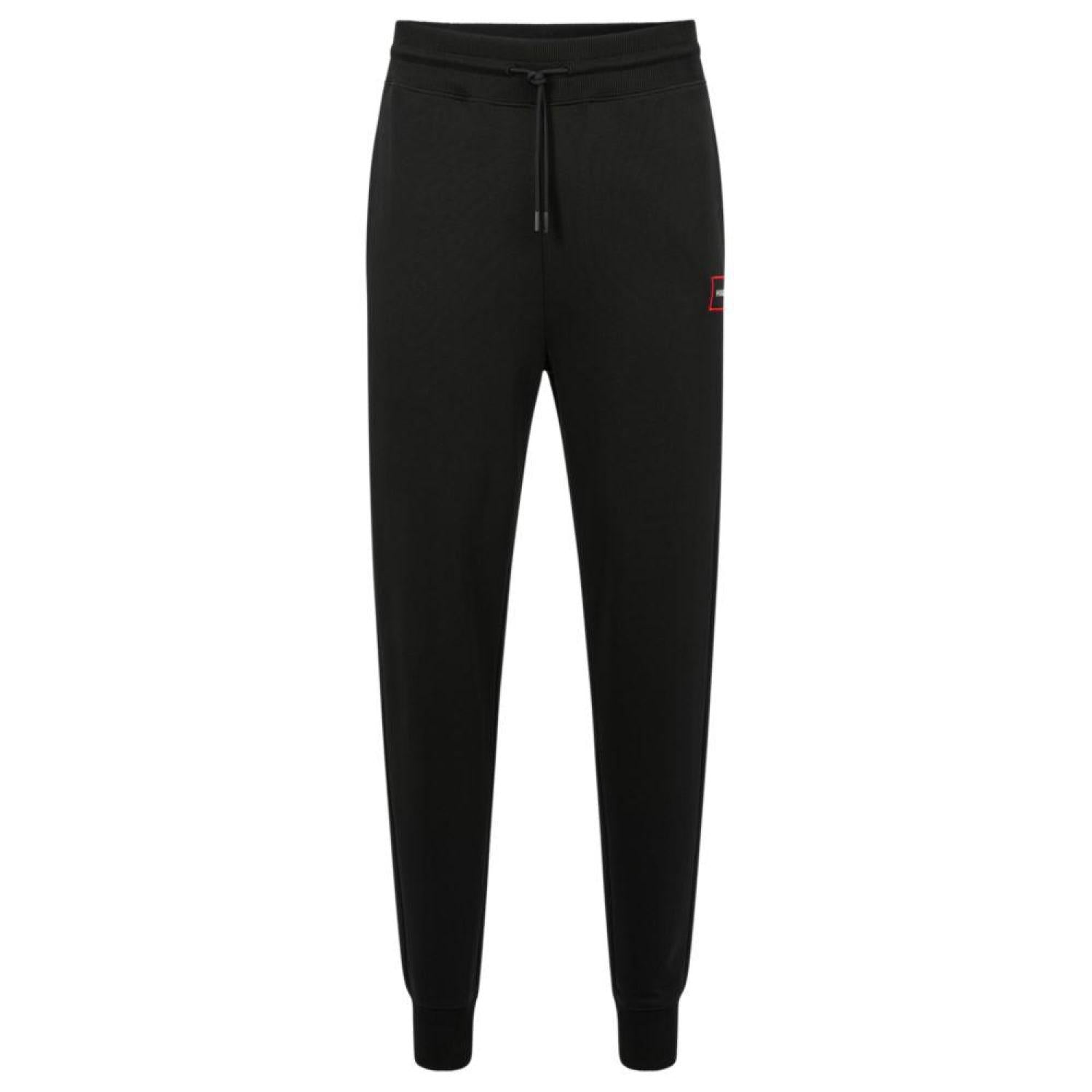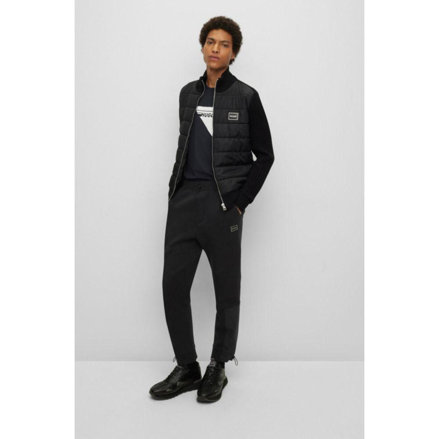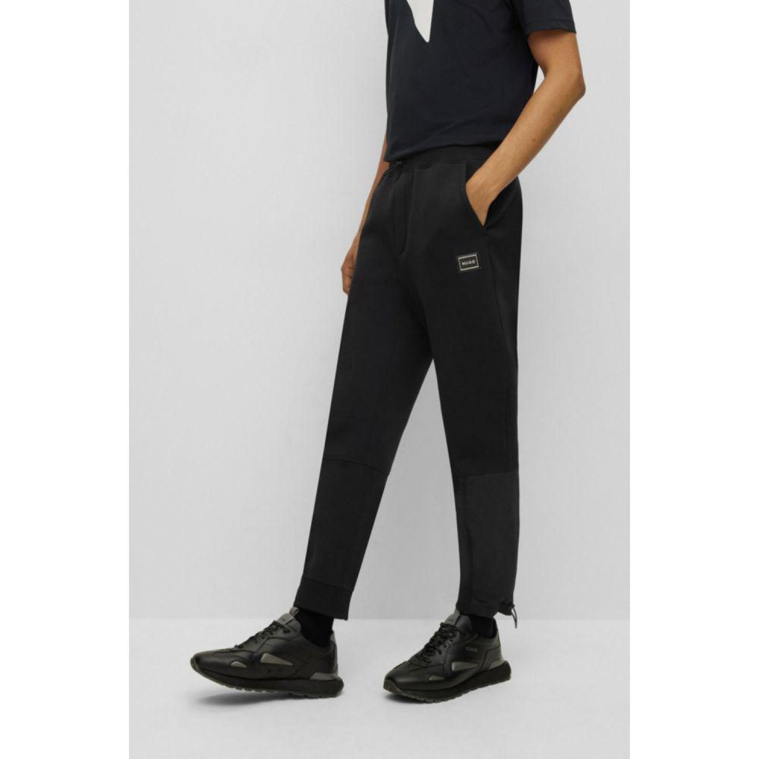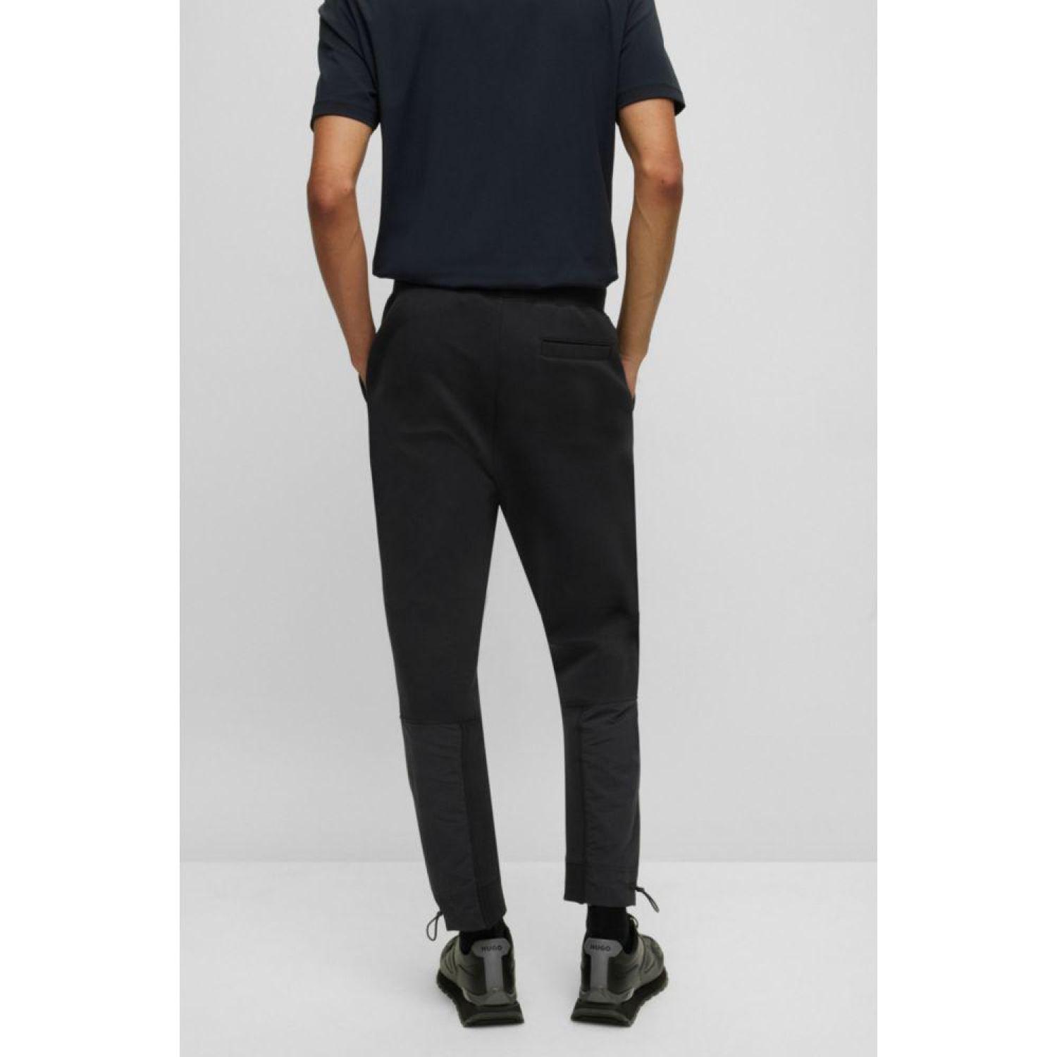 • Urban tracksuit bottoms in mixed materials by HUGO Menswear. Cut to a relaxed fit, these tracksuit bottoms are trimmed with a framed HUGO logo at the left leg for typical edge. The waistband and hems feature drawcords with adjustable toggles as a sporty touch.