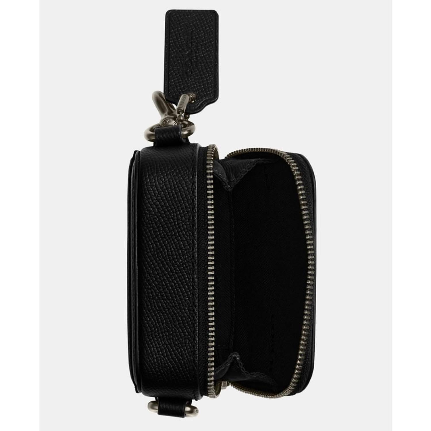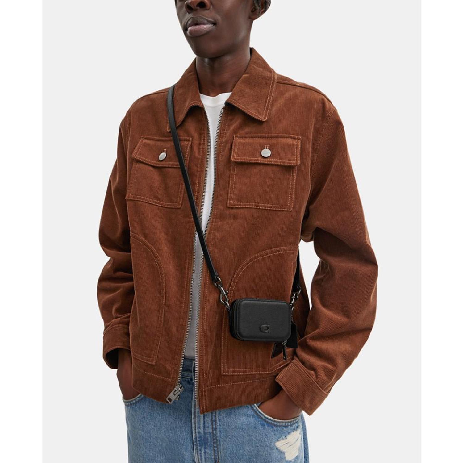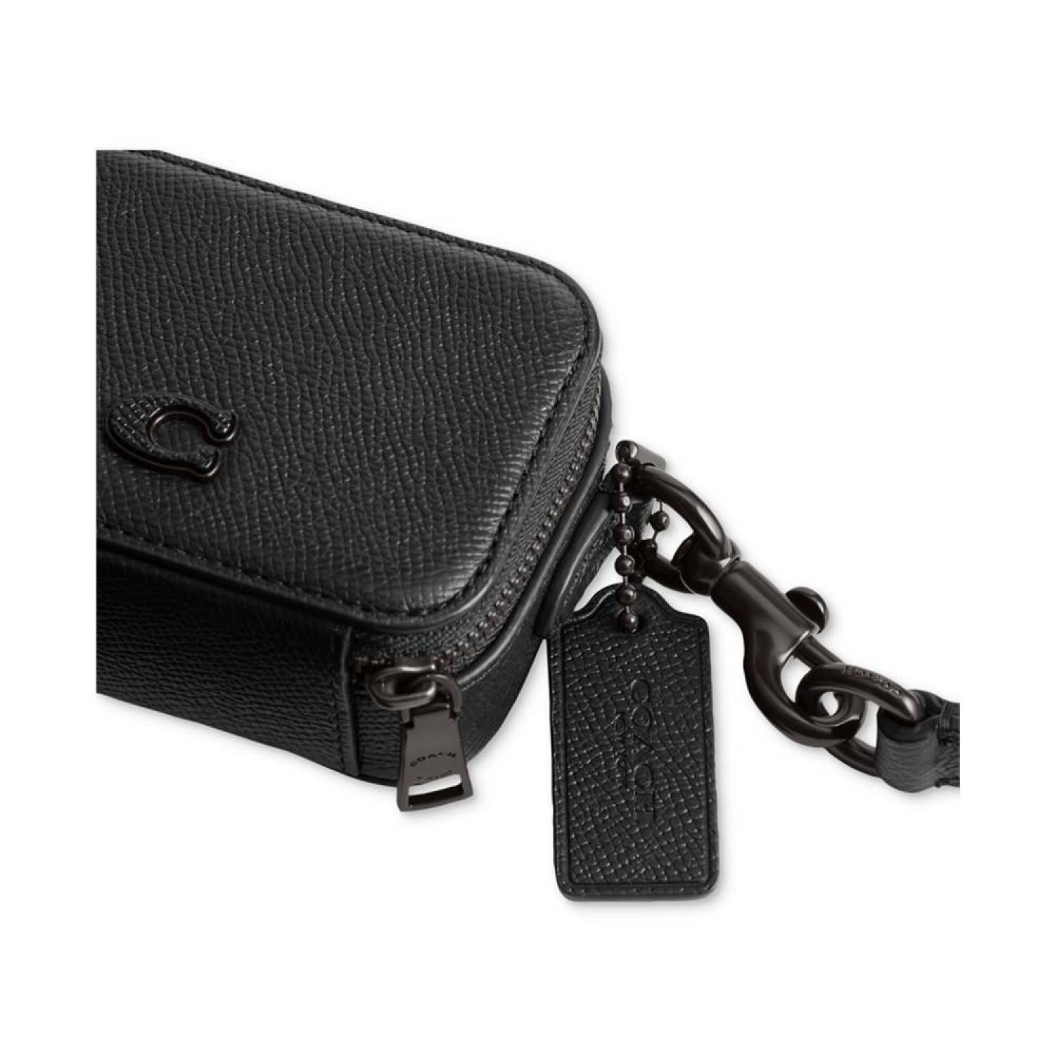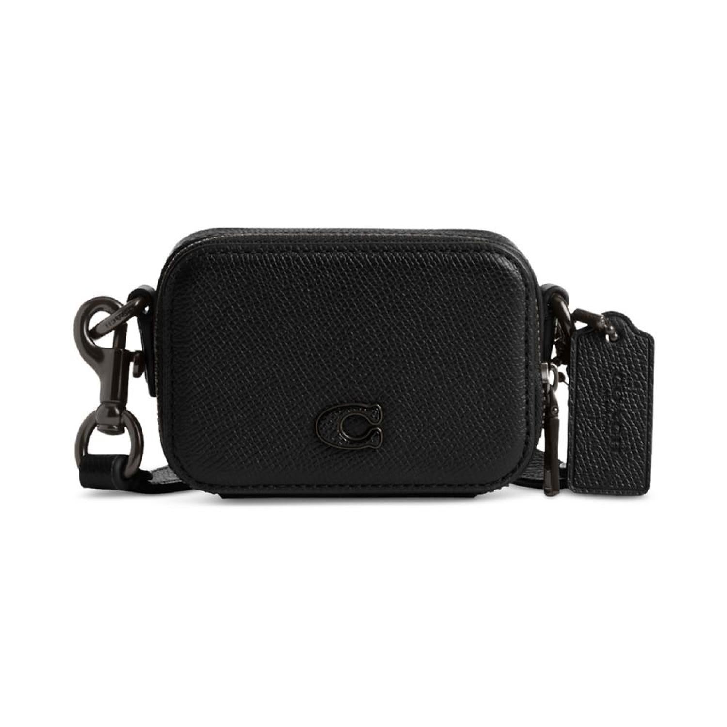 This compact pouch by COACH is great for organizing wireless headphones, cards, cash and other essentials. Wear crossbody with the detachable strap or attach it to your bag with the dog-leash clip. 4"W x 2-3/4"H x 1-1/4"D (width is measured across the bottom of handbag) Silhouette is based off 5'9" model 15-3/4" removable strap Zip closure Silver-tone hardware Leather Spot clean