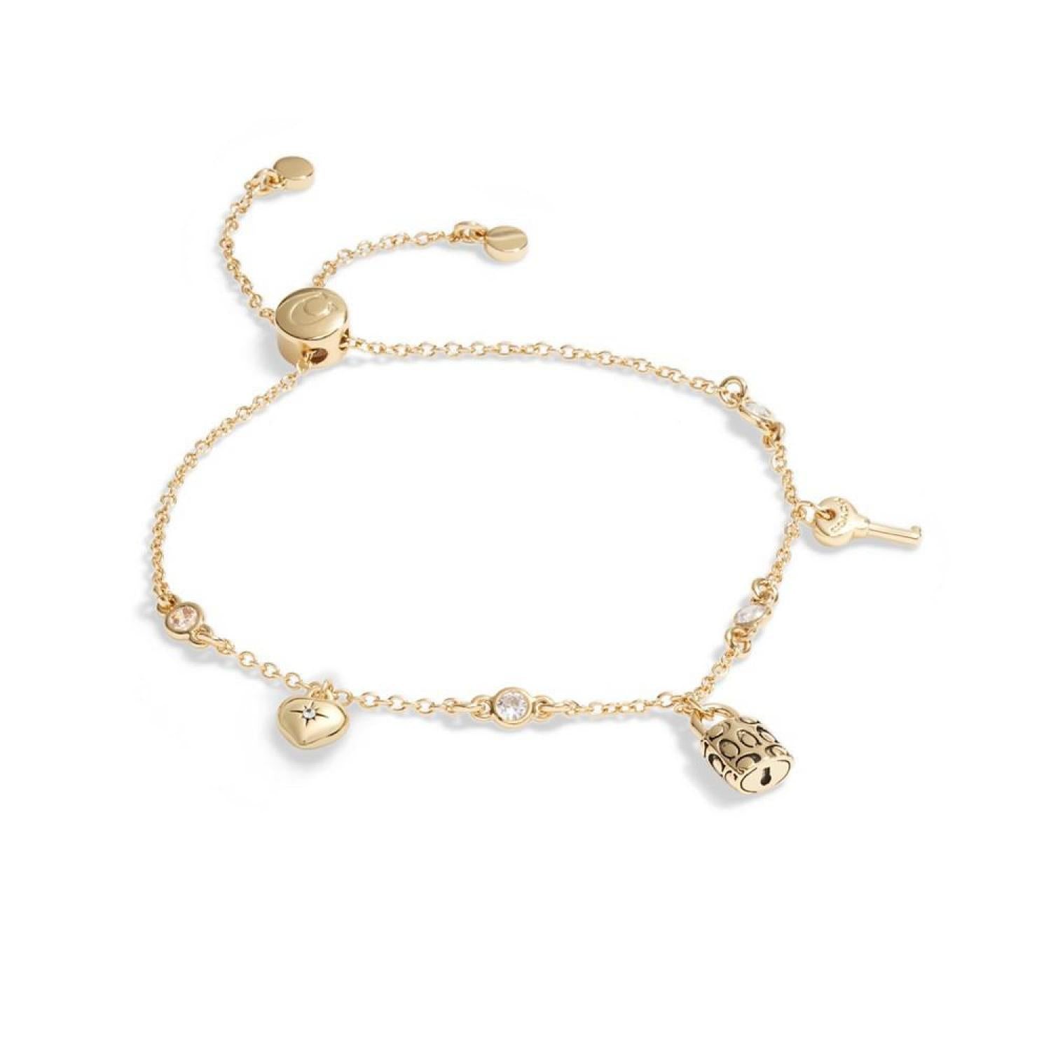 • Refined chain slider bracelet featuring delicate cubic zirconia and iconic signature charms including, quilted padlock, key and heart.