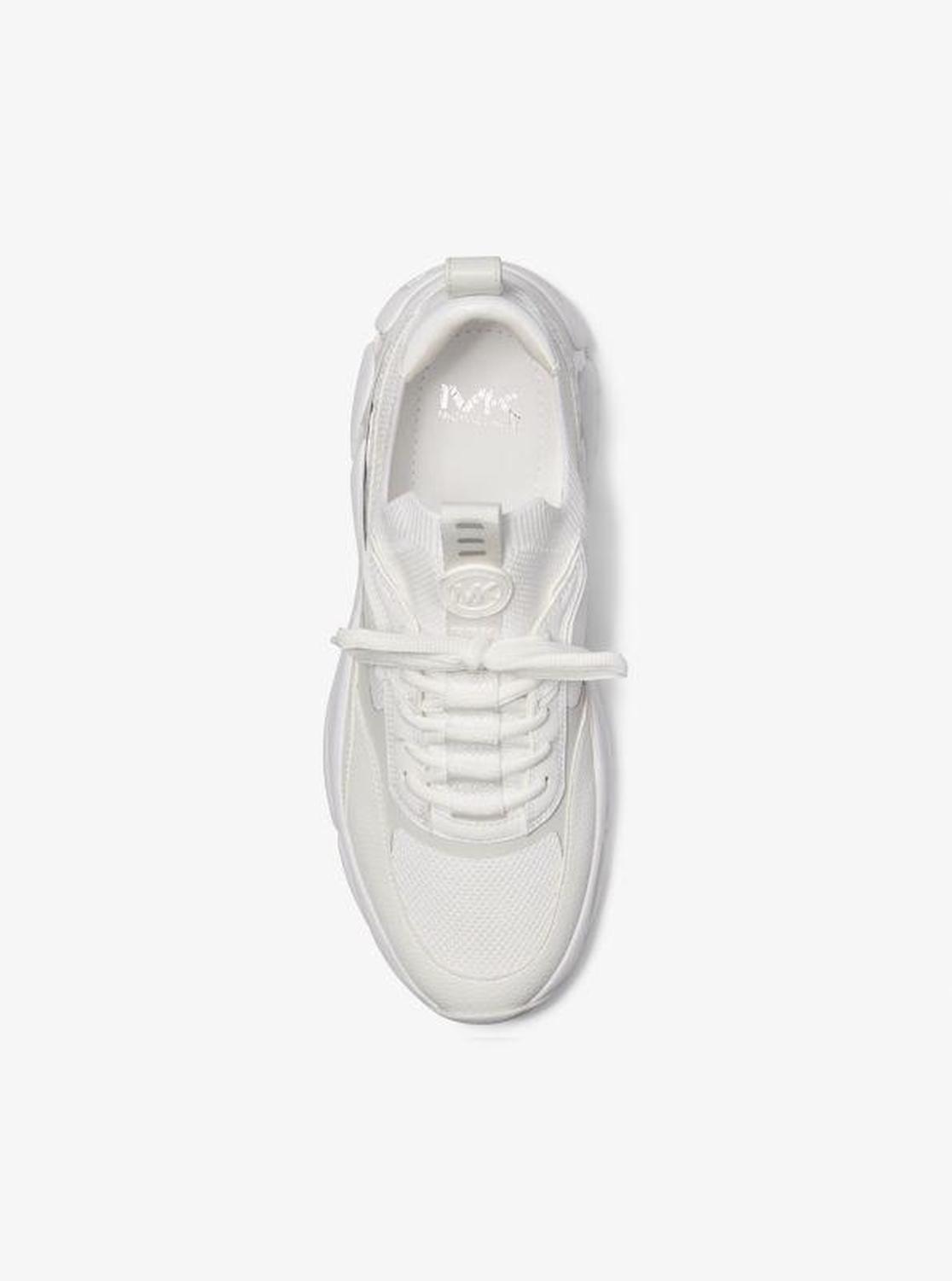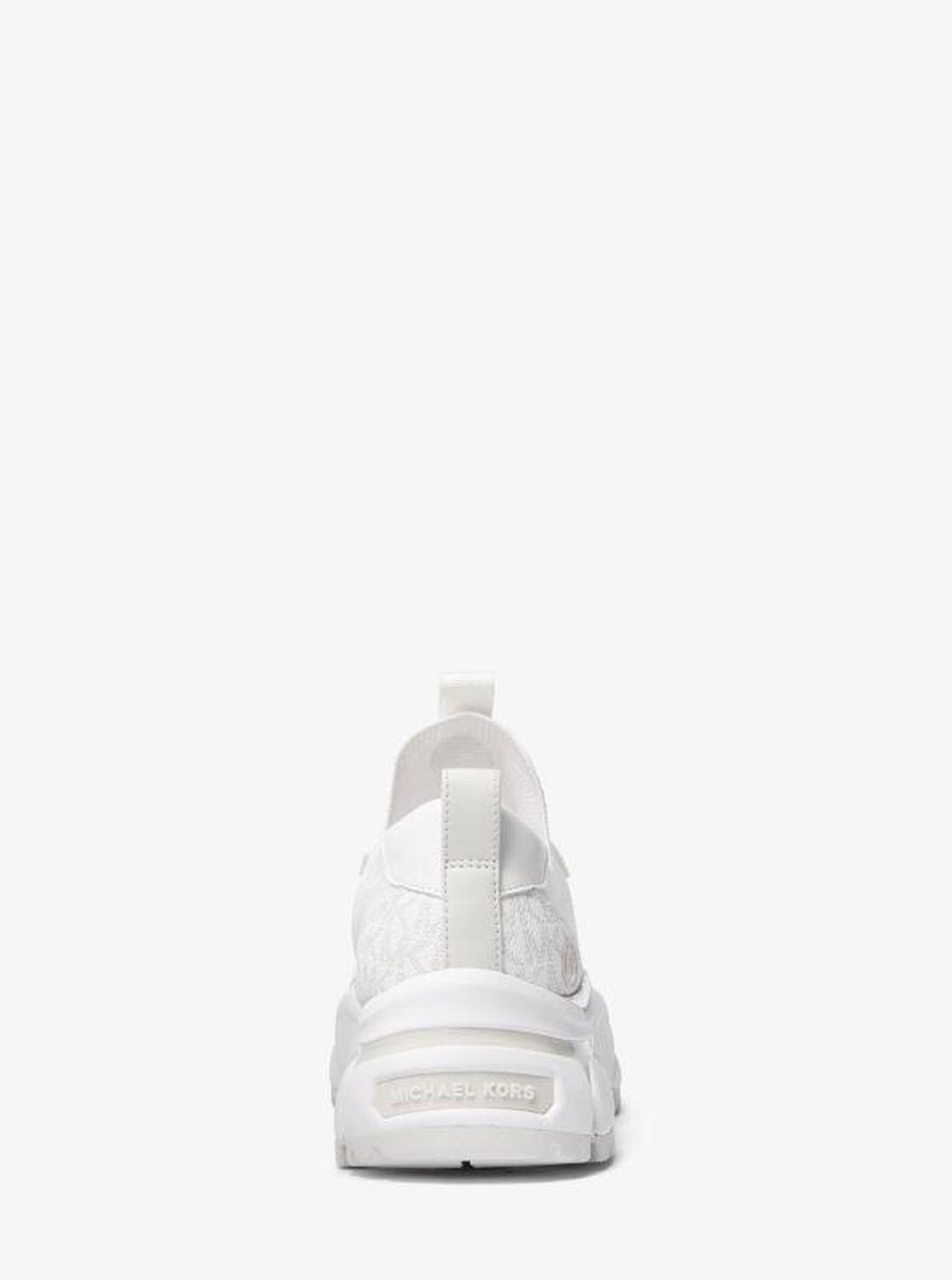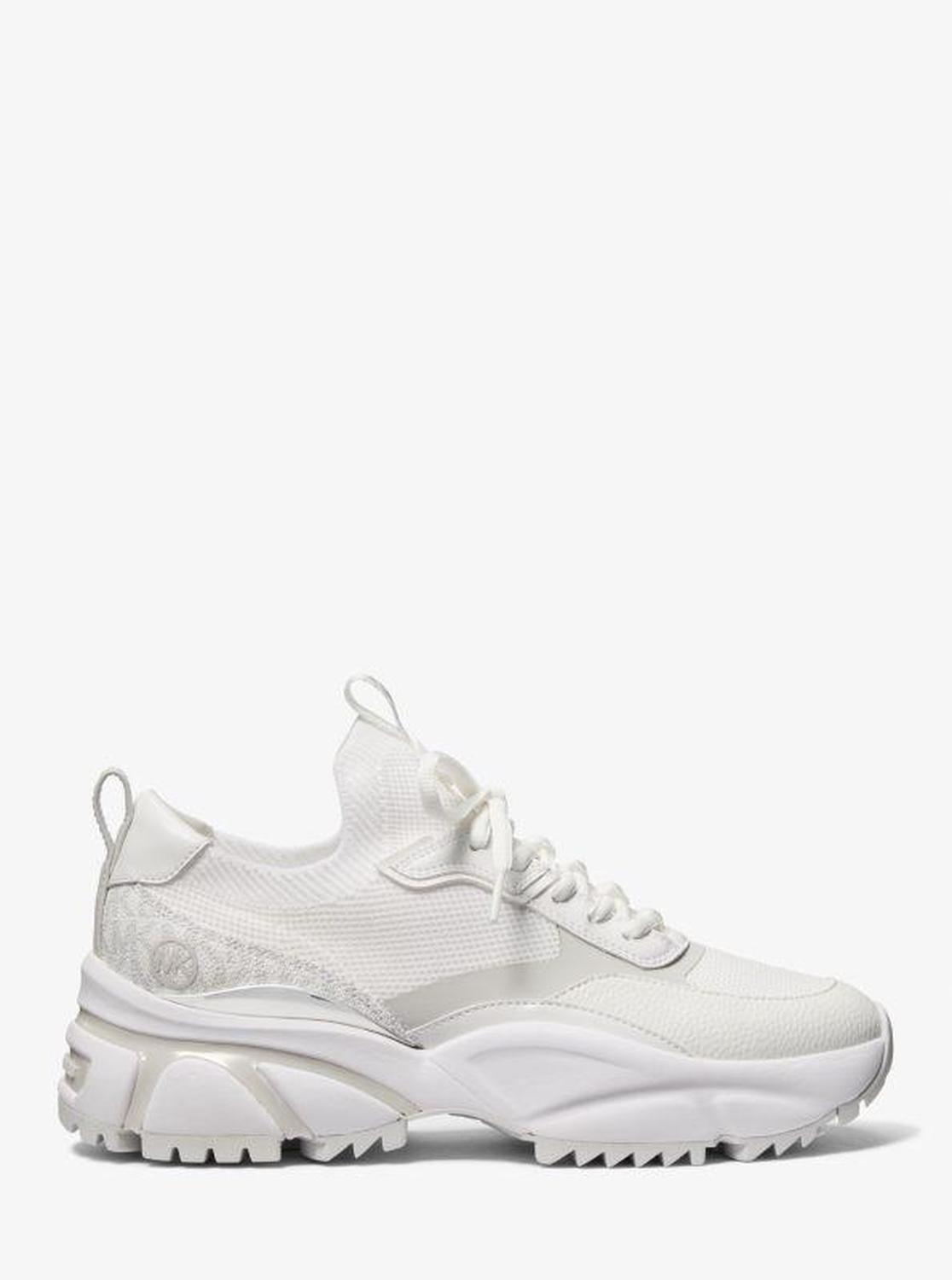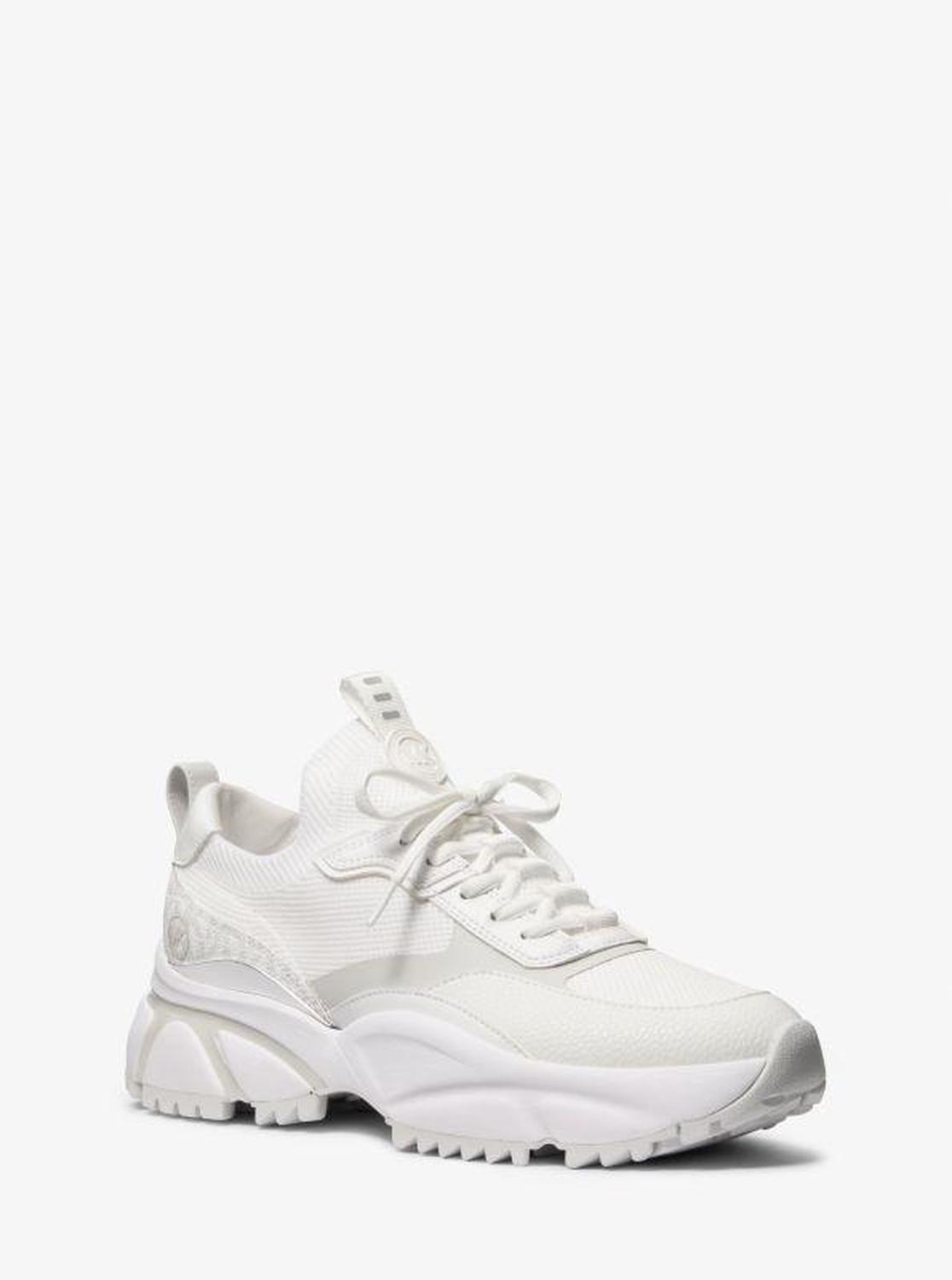 Michael Kors—defining modern glamour since 1981. • Trainer • Stretch knit/logo-print canvas/suede • Lining: polyester • Sole: rubber • Round toe • Lace-up fastening • Imported • Trainer • Stretch knit/logo-print canvas/suede • Lining: polyester • Sole: rubber • Round toe • Lace-up fastening • Imported