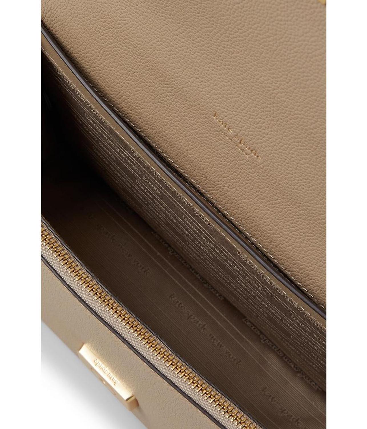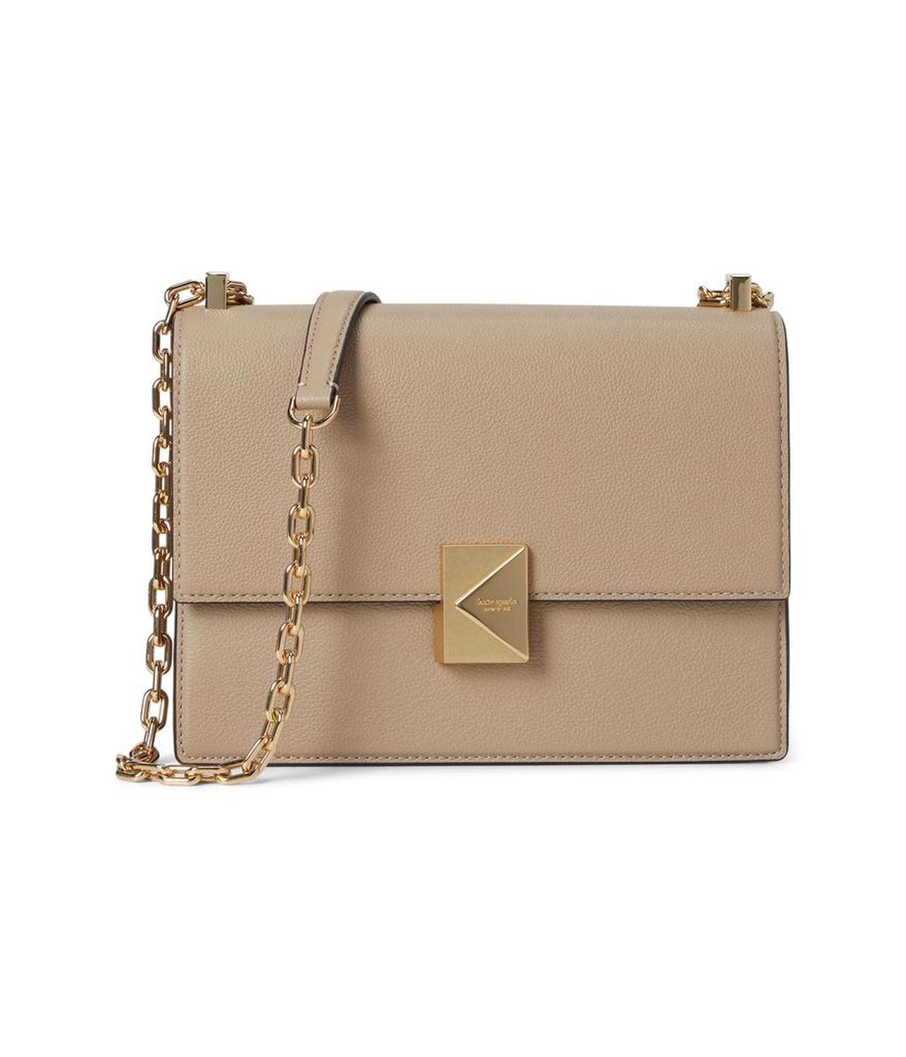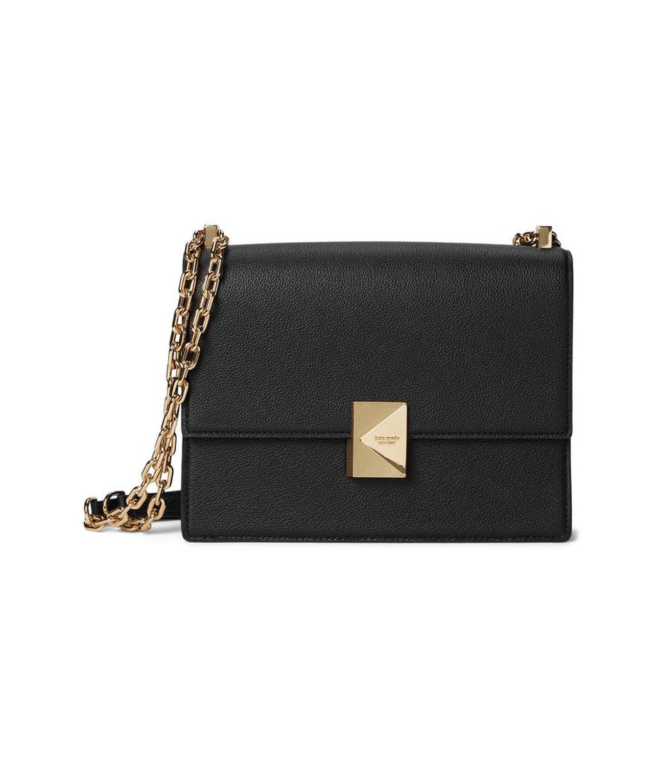 Inspired by the Art Deco style, the Kate Spade New York® Deco Pebbled Leather Chain Shoulder purse serves as a perfect accessory to amp up your looks and outfits. Made from pebbled leather, this shoulder purse can fit an iPhone Max and a zip-around continental wallet. The adjustable chain shoulder strap and top grab handle offer versatile styling. For better storage and organization, this leather purse features an interior slip pocket and a zippered pocket. Magnetic snap closure. Slip pocket at the exterior back. Faille lining and PU trim. Imported. Please note, the hardware color and interior lining may differ from the color shown in the photo. Measurements: Bottom Width: 9 in Depth: 2 3/4 in Height: 6 3/4 in Strap Length: 46 in Strap Drop: 22 in Weight: 1 lb 6.7 oz