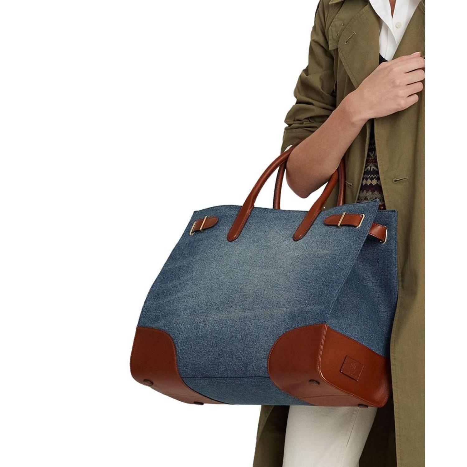Devyn Denim with Leather Trim Large Tote Bag