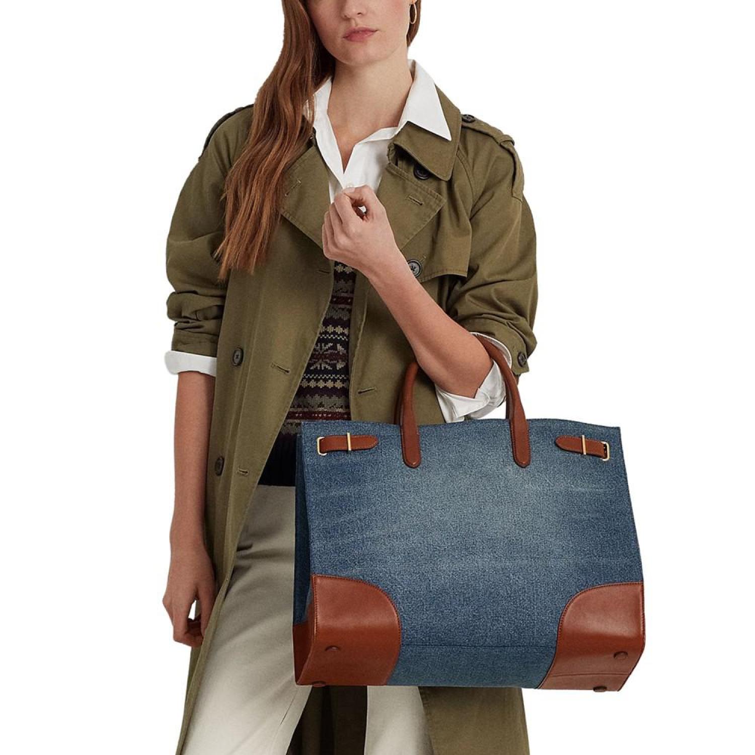 • Rendered in vintage-inspired washed denim, Lauren Ralph Lauren's Devyn Tote is designed with a spacious silhouette and a myriad of pockets, offering ample storage for your essentials.