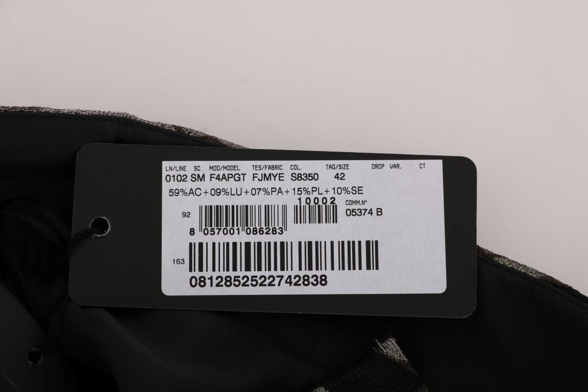 Dolce & Gabbana Elegant Black Silver-Floral Straight Skirt