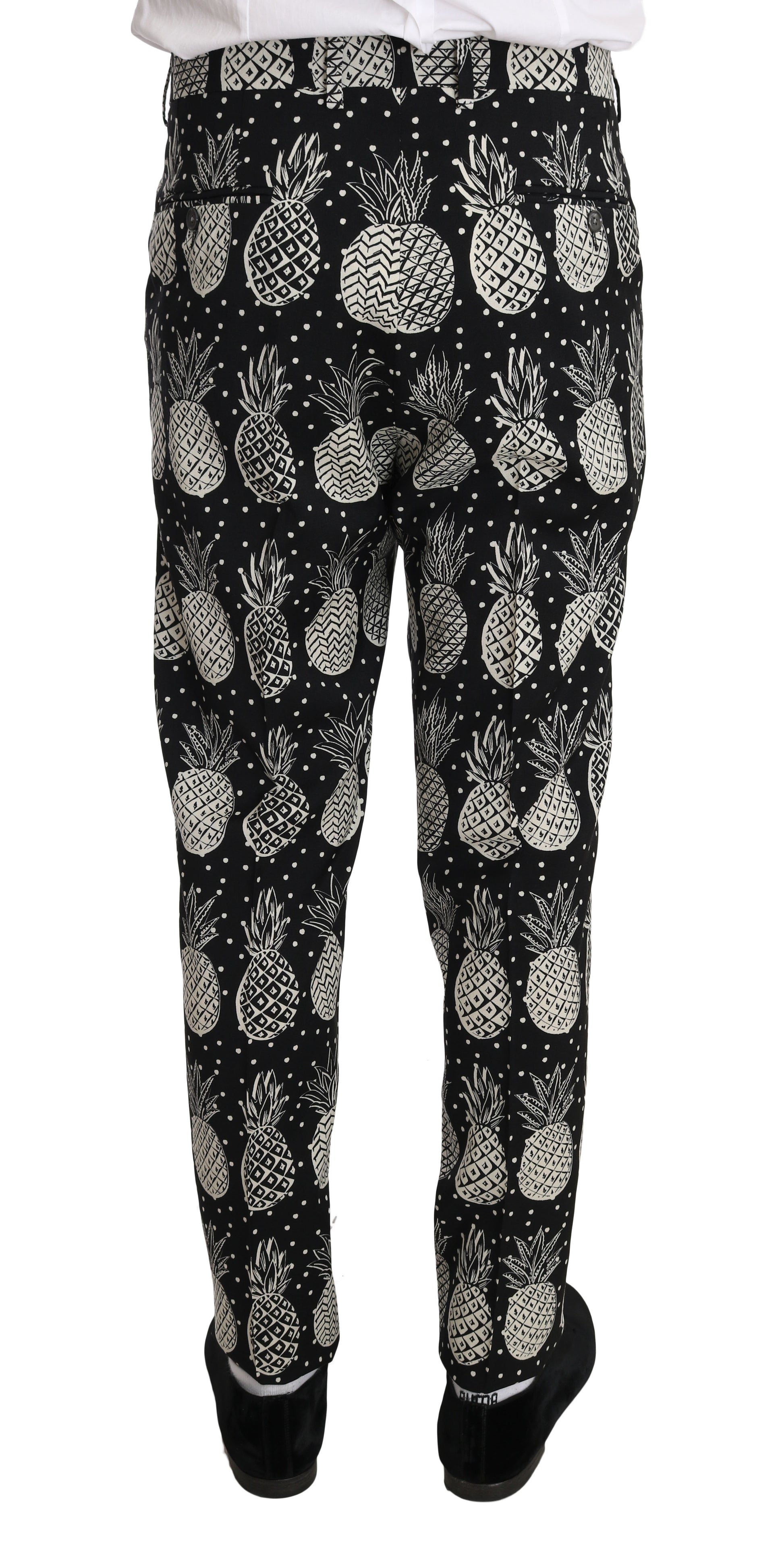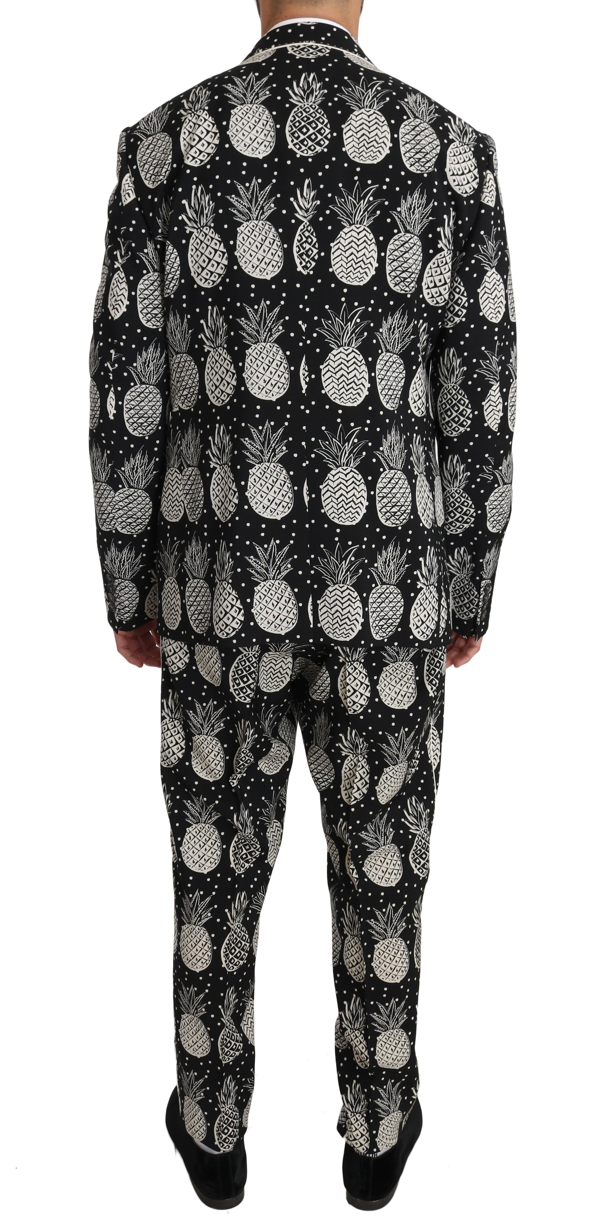 Dolce & Gabbana Chic Black Pineapple Print Wool Suit