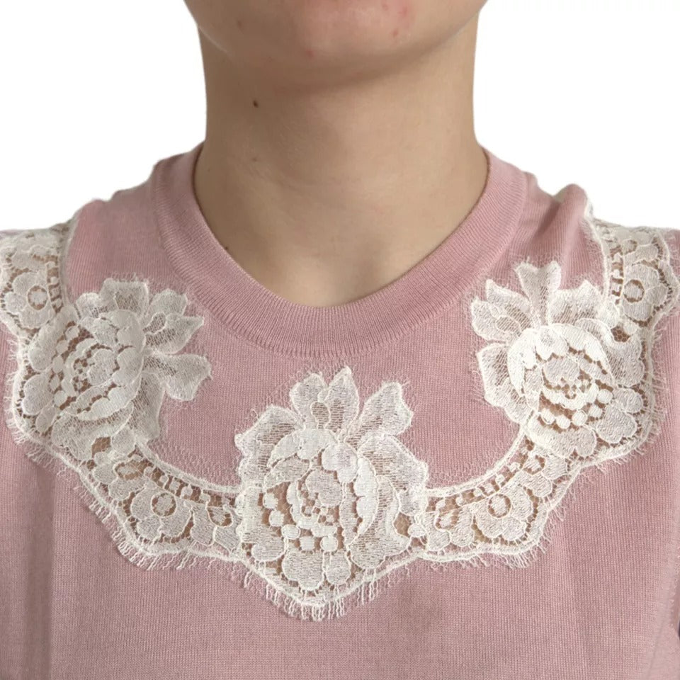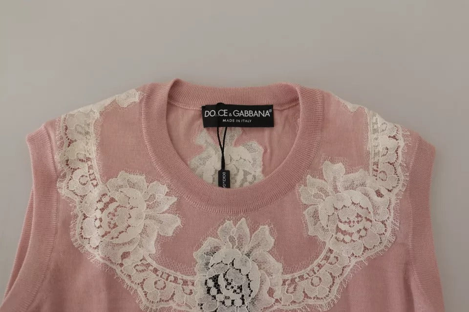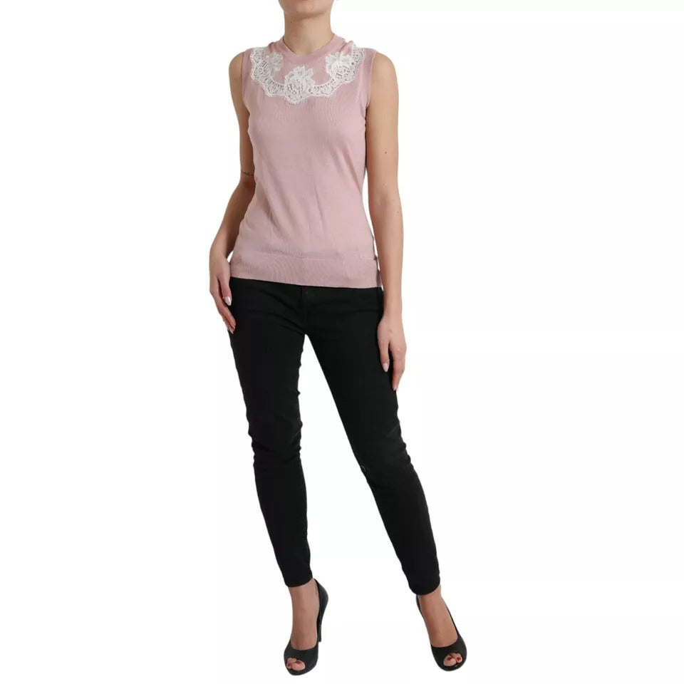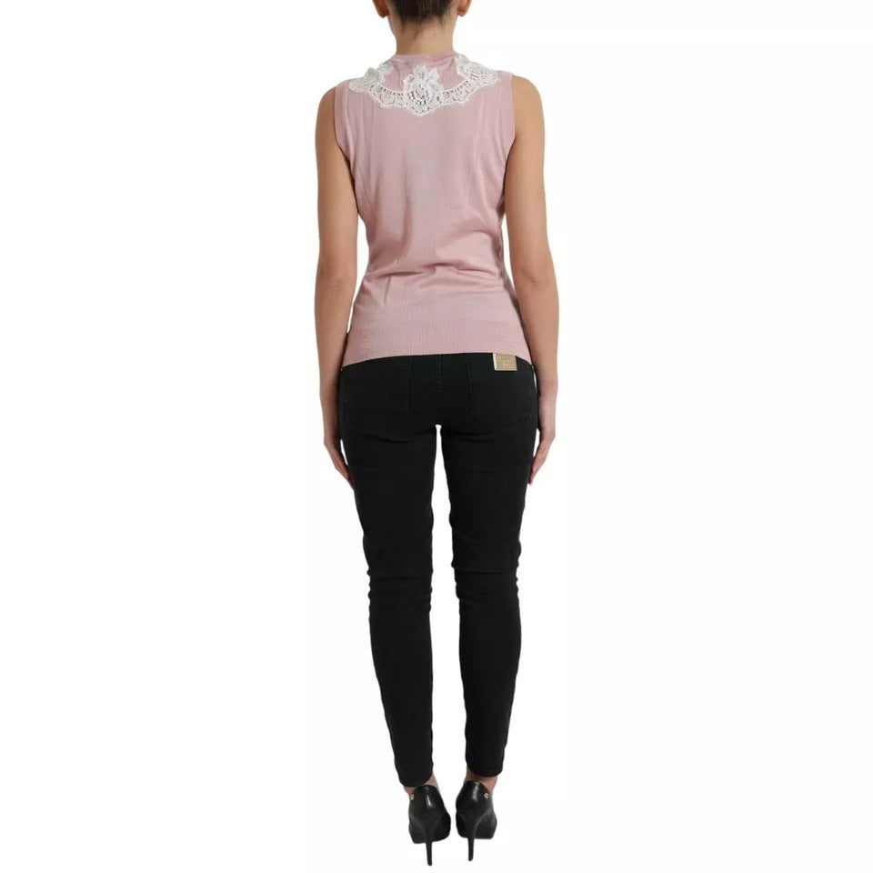 Dolce & Gabbana Pink Cashmere Lace Trim Sleeveless Tank Top