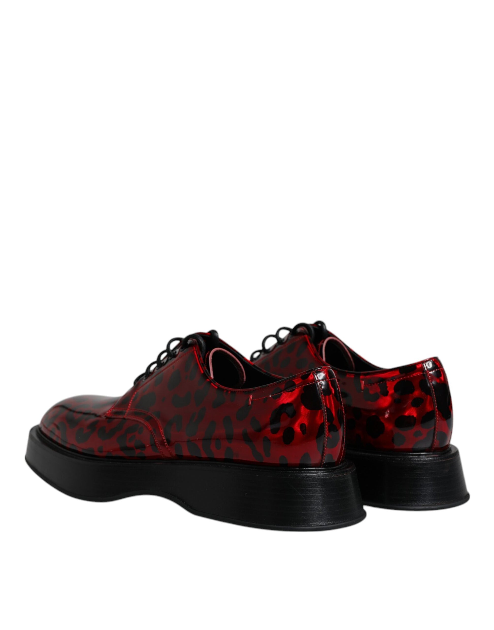 Dolce & Gabbana Red Black Leopard Lace Up Derby Dress Shoes