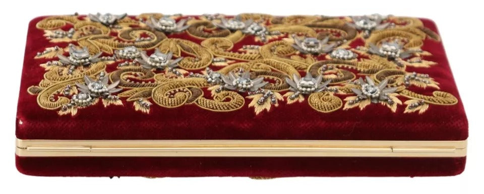 Dolce & Gabbana Red Velvet Gold Frame Clutch Evening Party Purse Bag