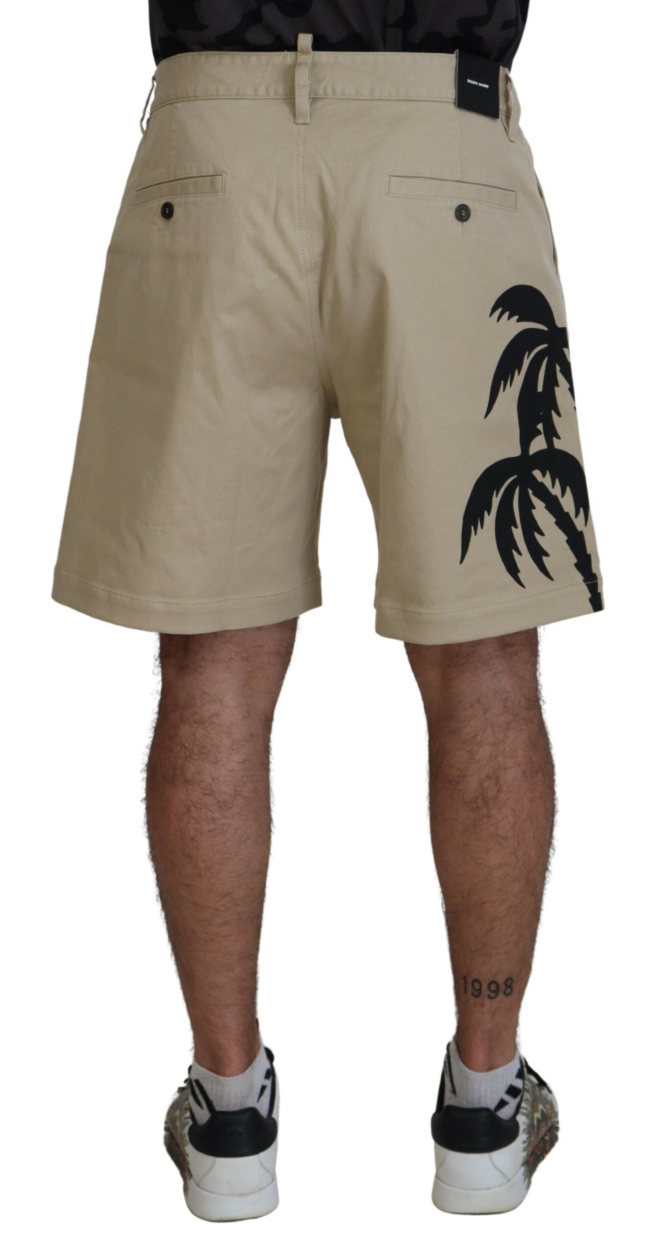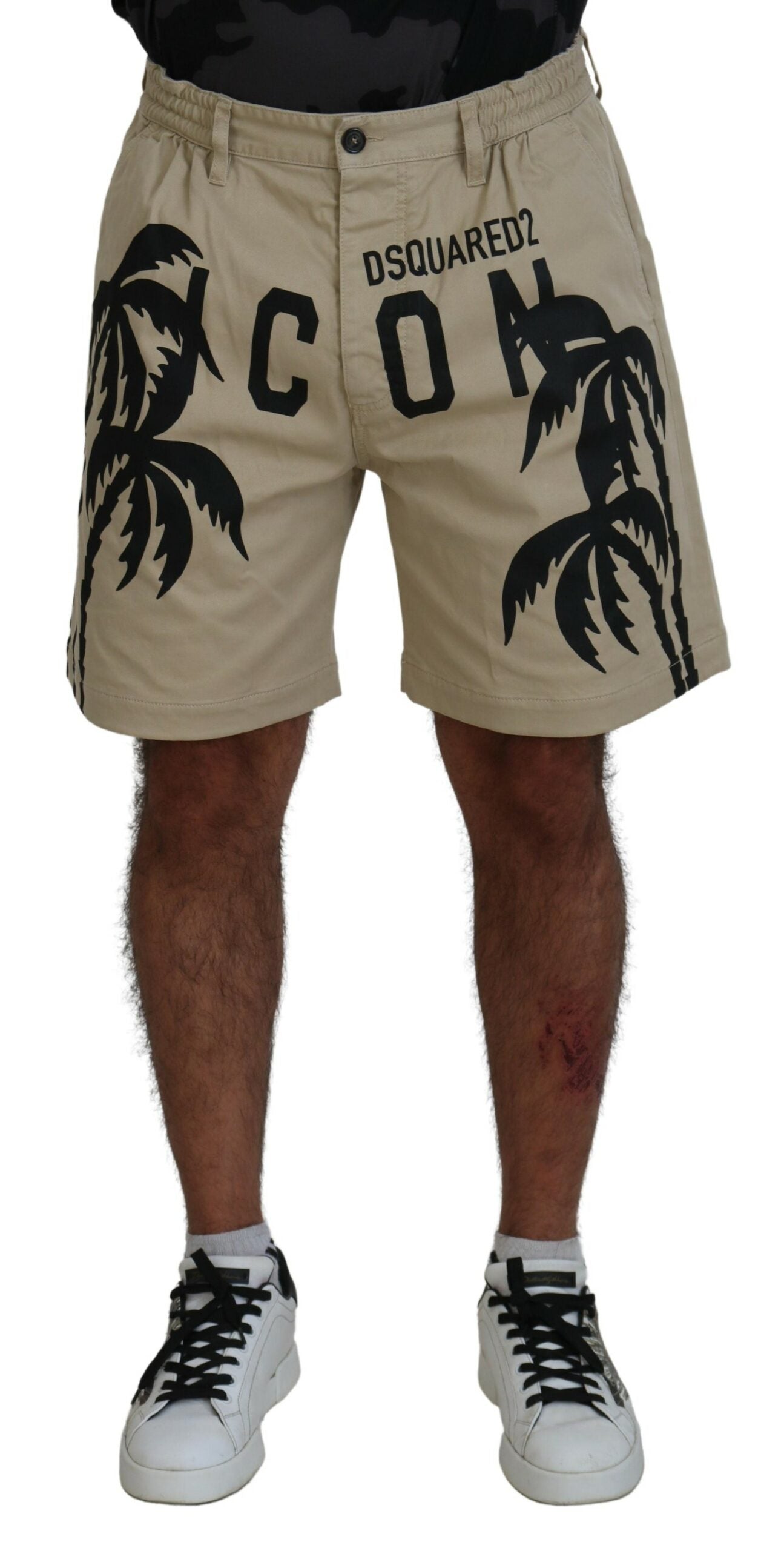 Dsquared² Beige Cotton Logo Printed Above Knee Shorts