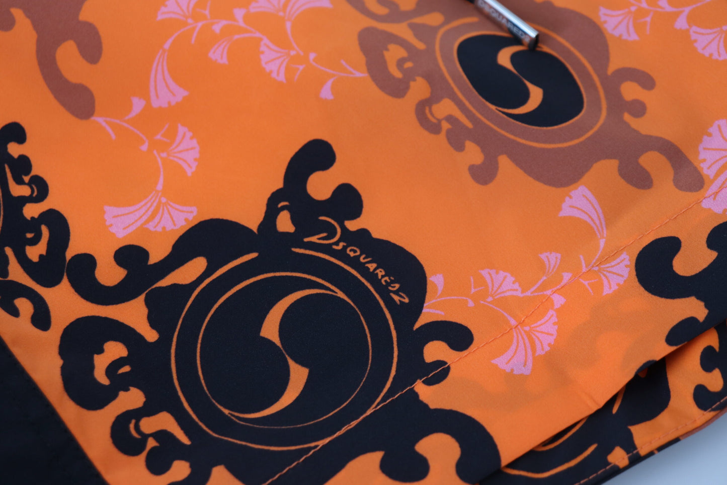 Dive into luxury with these vibrant Dsquared² swimming shorts, perfect for your next beach escapade or poolside relaxation. Rendered in a striking orange hue with black print detailing, these swim shorts boast not only style but also the utmost comfort and an impeccable fit with their elastic waistband and drawstring closure. Embrace the excellence of Italian craftsmanship with every wear, and let your swimwear make a statement this season.