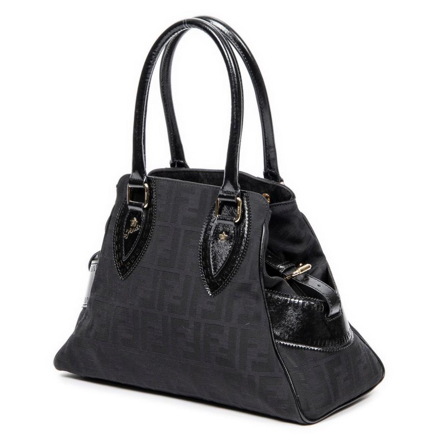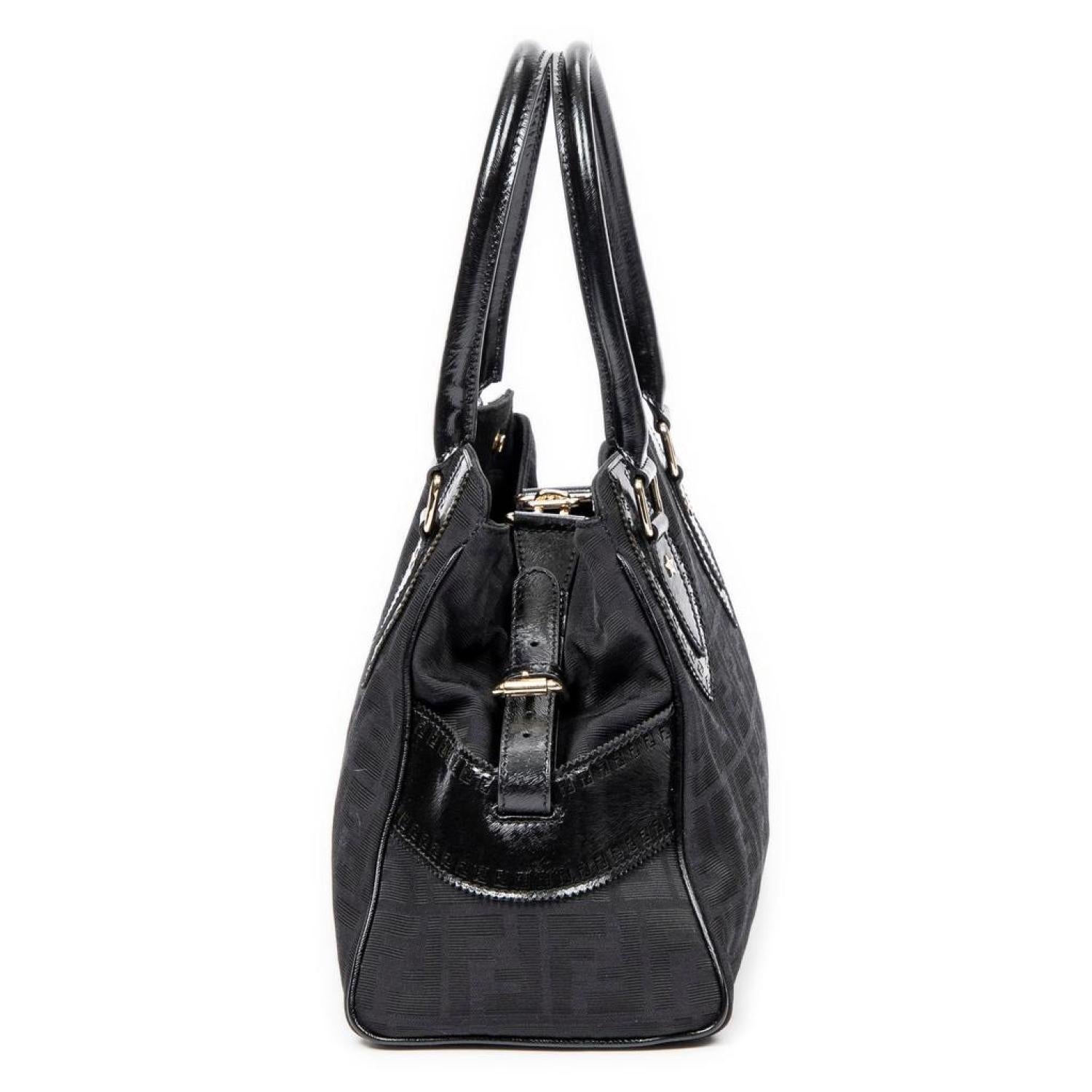 Fendi Shoulder Bag in Black Zucca Canvas and Gold hardware. Dimensions - 33*21*15cm. Serial number - 8BN157-CBT 109-2370. Inclusions - None.