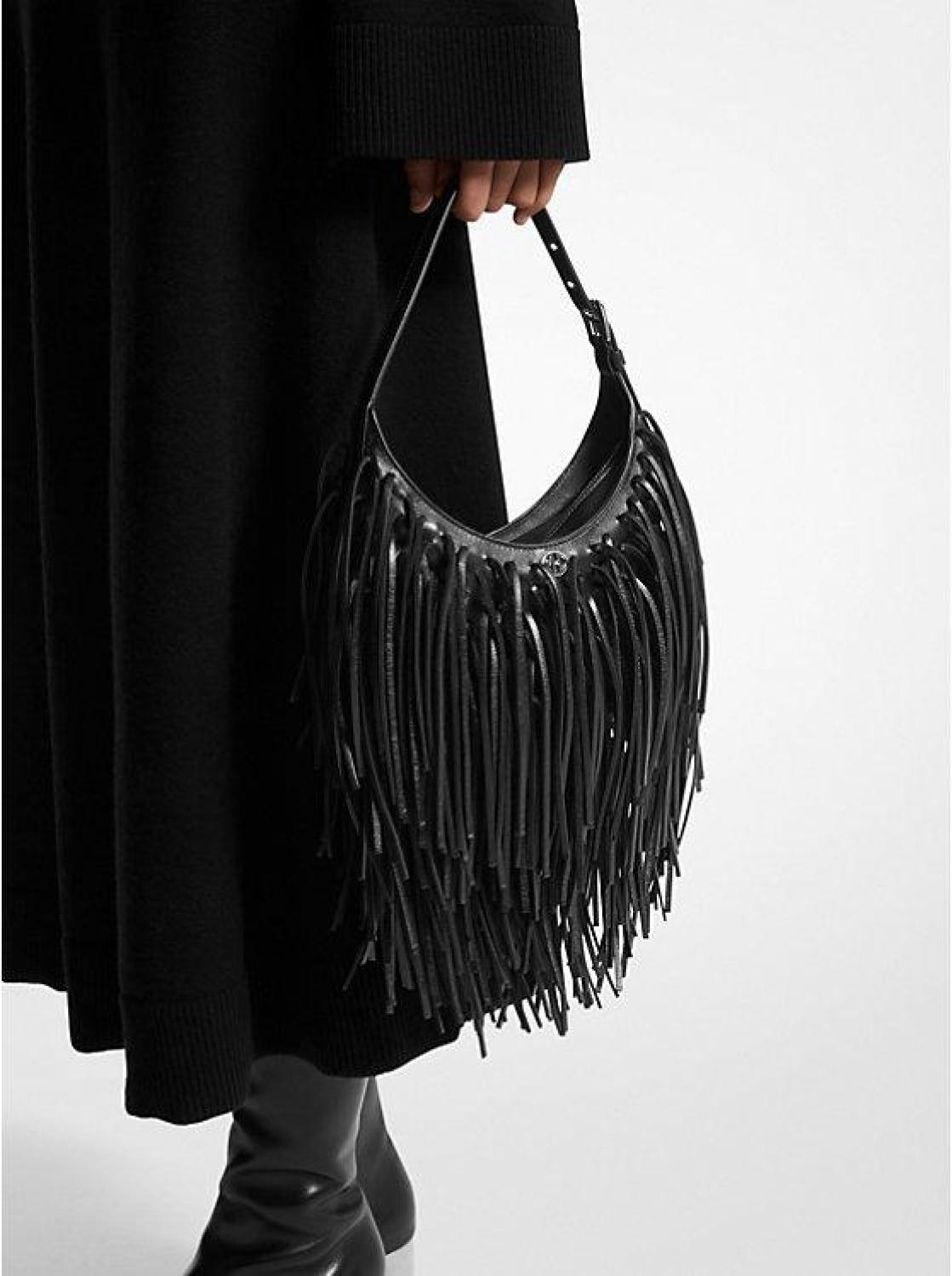 Add a softer sensibility to your repertoire this season with the Dyan shoulder bag. Crafted from shiny calf leather and designed to fit snug on the shoulder, it features layers of fringe for exquisite movement. Made in Italy. • Shoulder bag • Leather • 100% leather • Silver-tone hardware • 11"W X 7"H X 2"D • Handle drop: 9" • Interior details: back slip pocket • Lining: 100% suede • Zip fastening • Made in Italy • Shoulder bag • Leather • 100% leather • Silver-tone hardware • 11"W X 7"H X 2"D • Handle drop: 9" • Interior details: back slip pocket • Lining: 100% suede • Zip fastening • Made in Italy