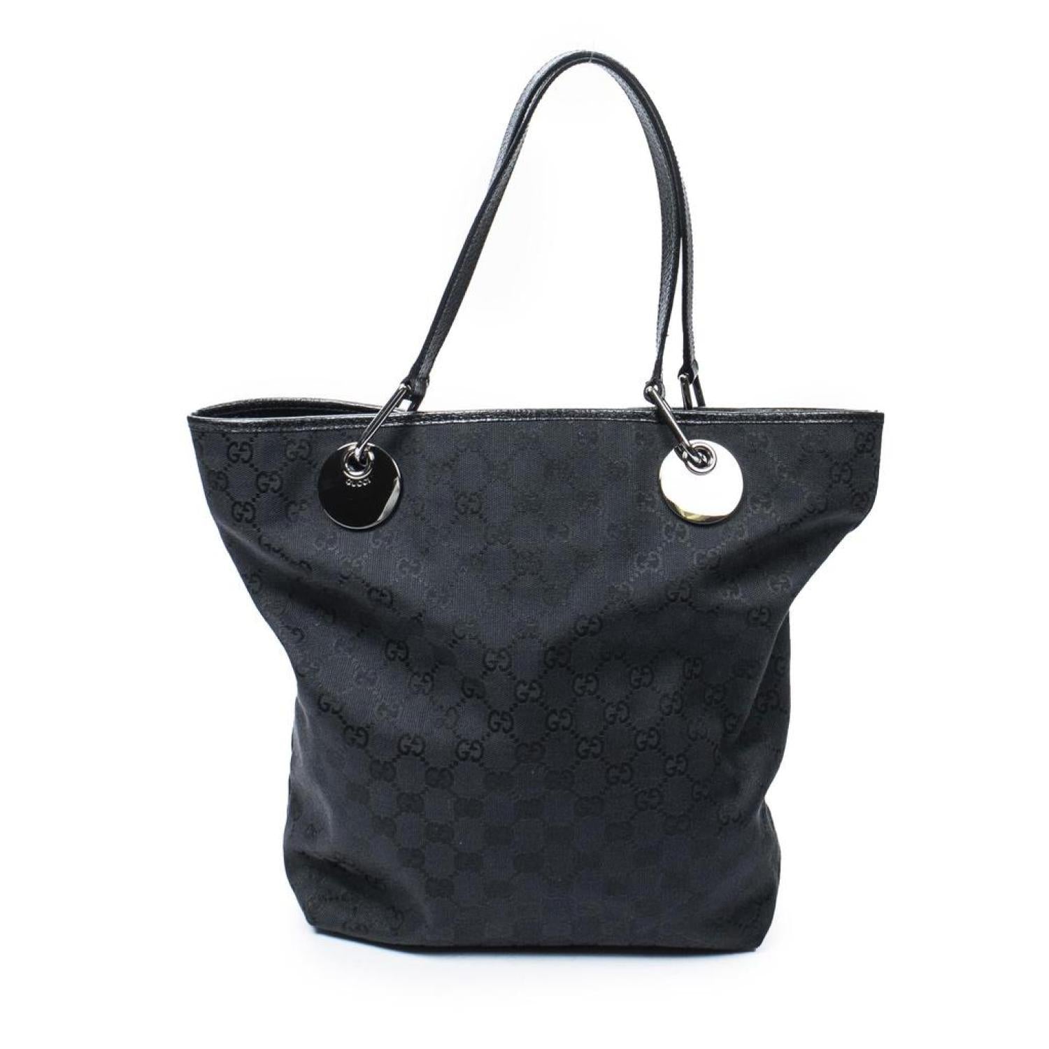 Gucci Shoulder Bag in Black Monogrammed Canvas and Silver hardware. Dimensions - 24*30*11cm. Serial number - 120836 002058. Inclusions - None.