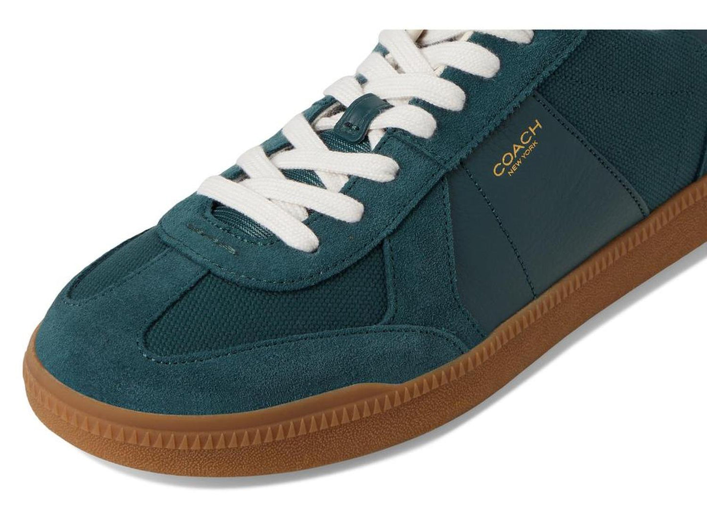 Please Note: COACH™ items cannot be shipped to military addresses (APO or FPO) and addresses in Hawaii, the Virgin Islands, Guam or any other locations outside of the continental US. Treat your feet to the ultimate style and comfort choosing the COACH™ Soho Sneakers! Boasting a sleek design with leather, suede, and canvas upper, these sneakers are a versatile addition to your wardrobe. The man-made leather lining and footbed provide lasting comfort, while the brand lettering on the side adds a touch of sophistication. Lace-up closure. Low-top style. Round toe design. Rubber outsole. Imported.