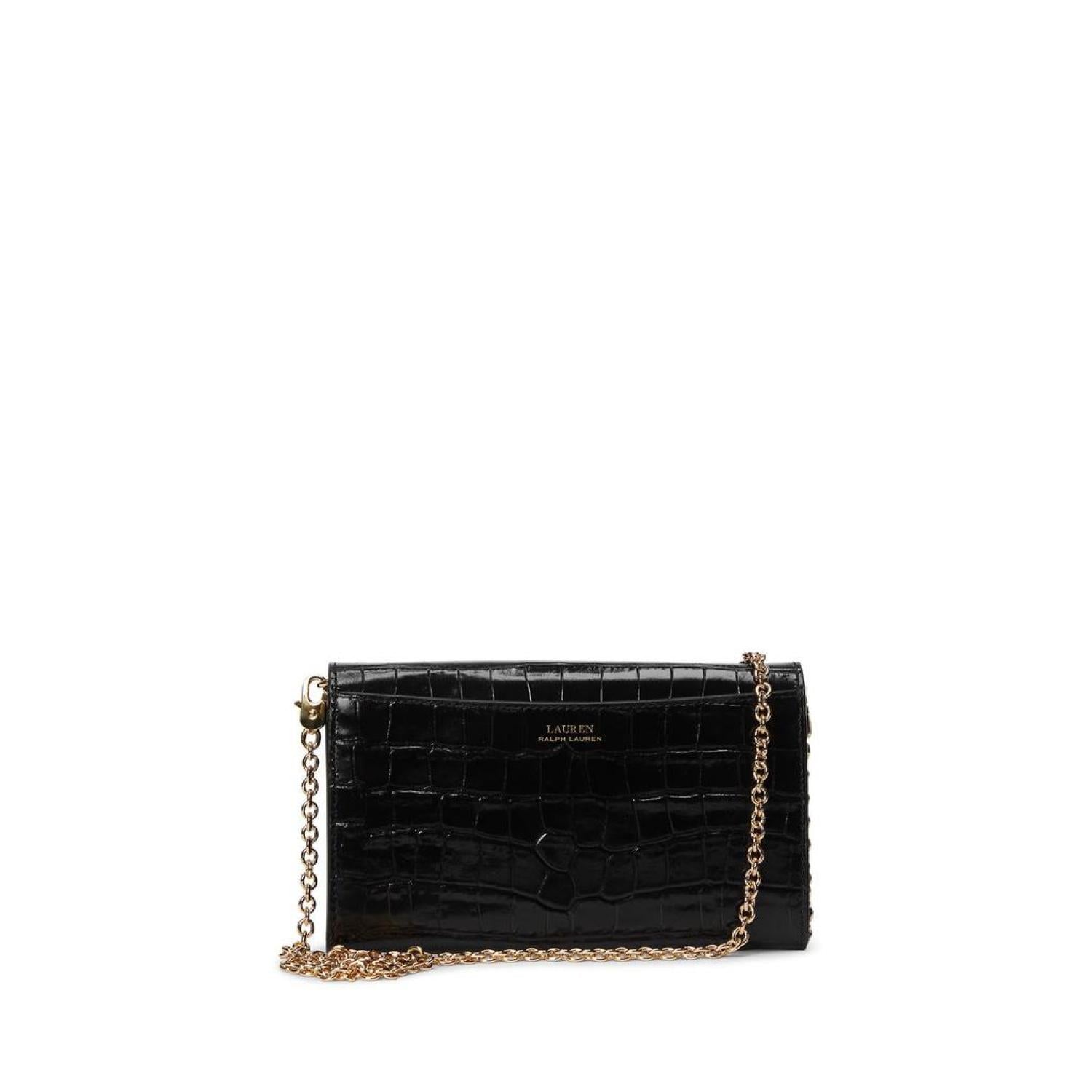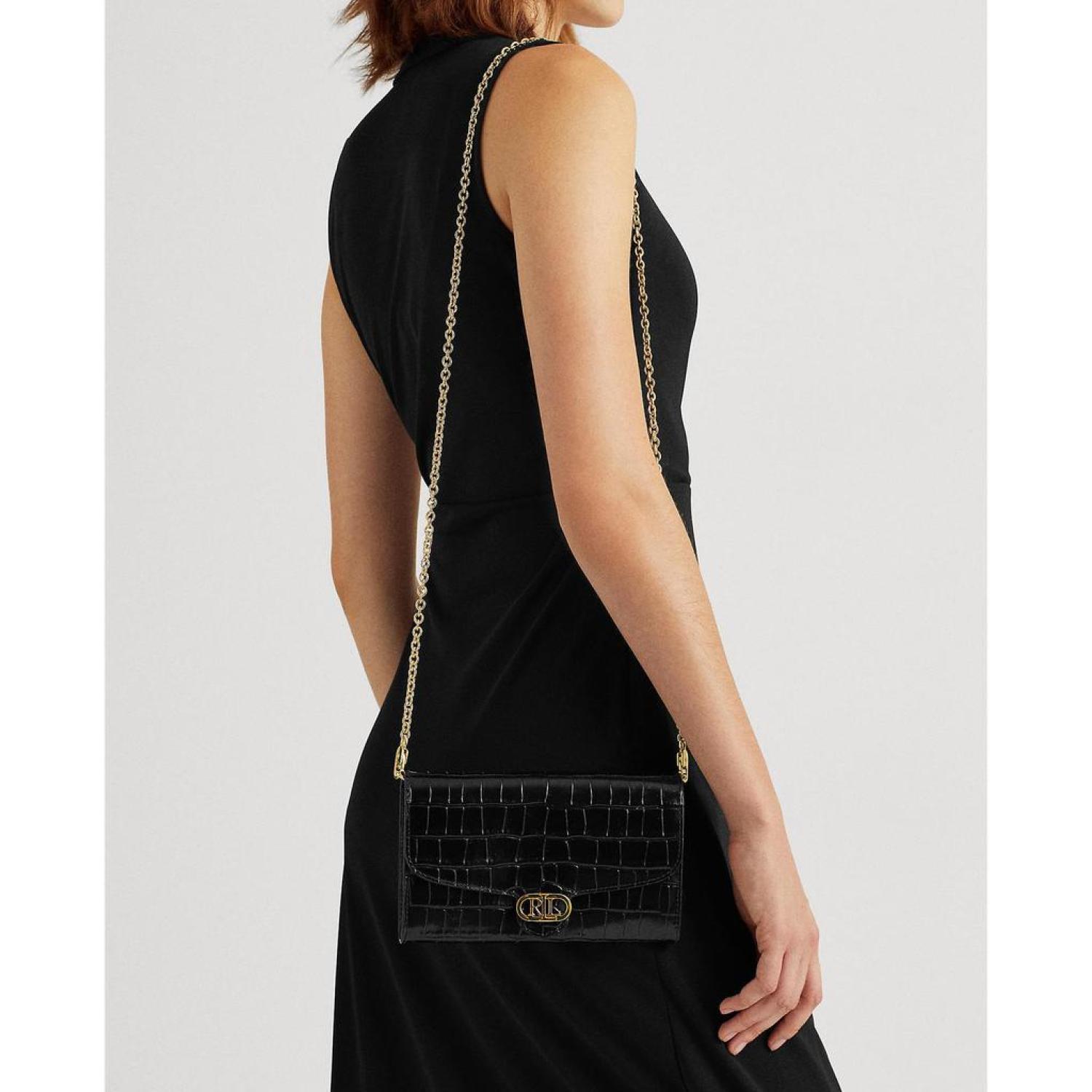 Flaunt your voguish flair by grabbing the LAUREN Ralph Lauren® Embossed Leather Medium Adair Crossbody. Featuring crocodile-embossed cow leather construction, it has a removable chain strap, one interior and three exterior slip pockets with eight credit card slots. Magnetic snap closure. Interior zippered pocket. Branding hardware on the front. Polyester lining. Imported. Please note, the hardware color and interior lining may differ from the color shown in the photo. Measurements: Bottom Width: 8 in Depth: 1 1/4 in Height: 4 3/4 in Strap Drop: 22 1/2 in Weight: 1 lb-