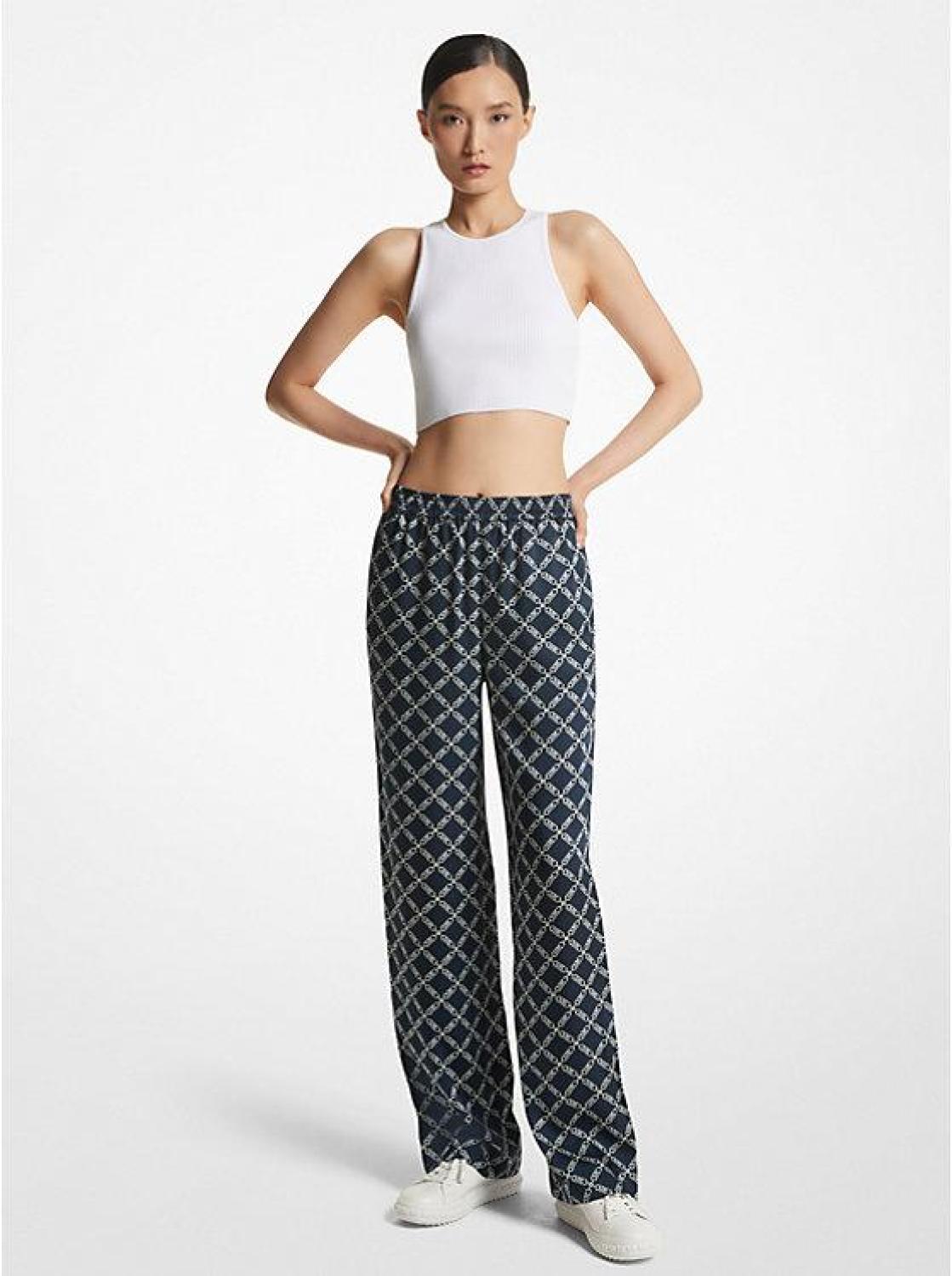 • These pajama pants feel as elegant as they look thanks to their satin-twill construction. Designed in a straight-leg silhouette and printed with our Empire motif, they feature an elastic waist for comfortable wear and handy side pockets. Wear them out of the house with the matching shirt and a pair of slip-on sandals.