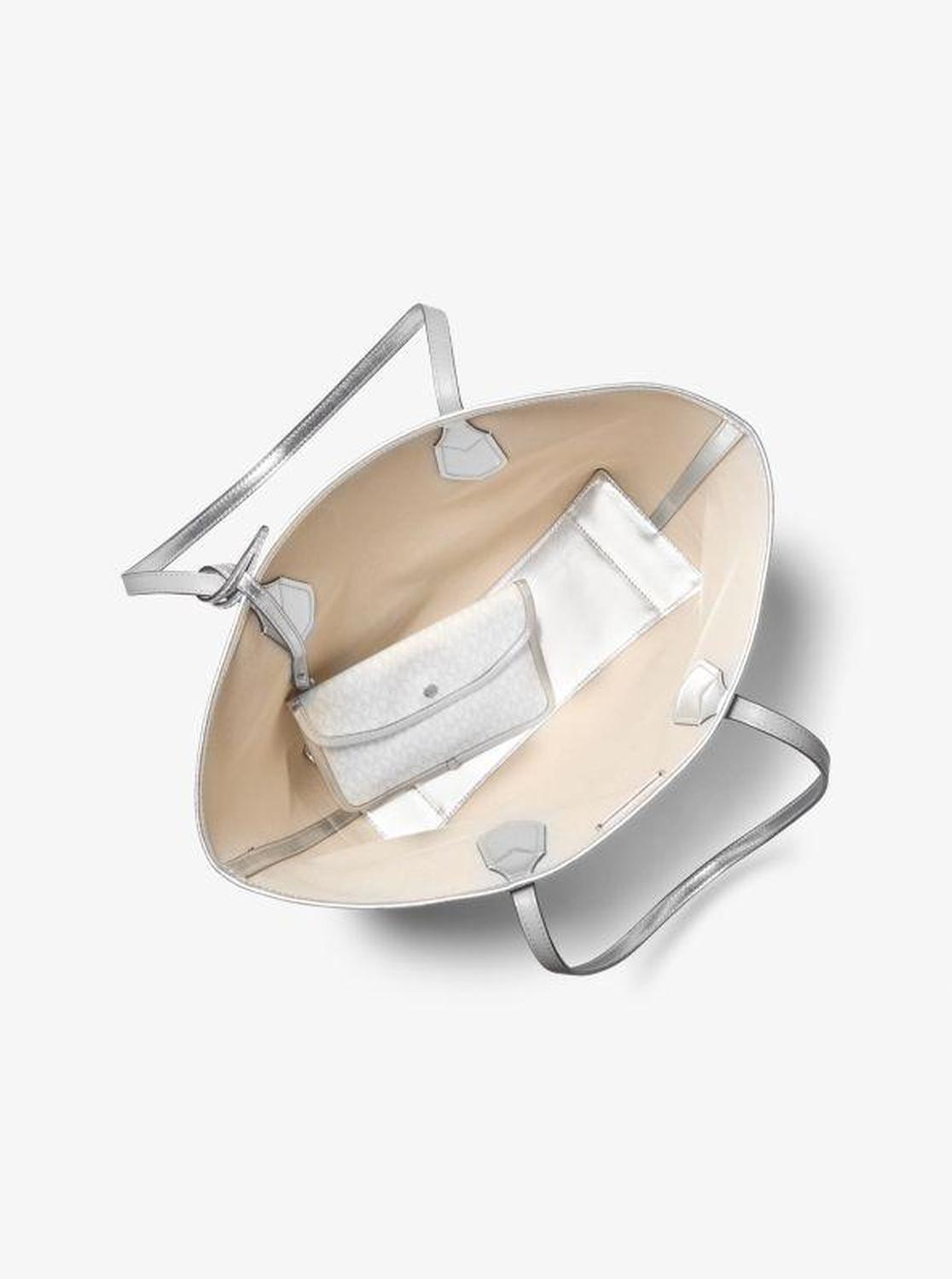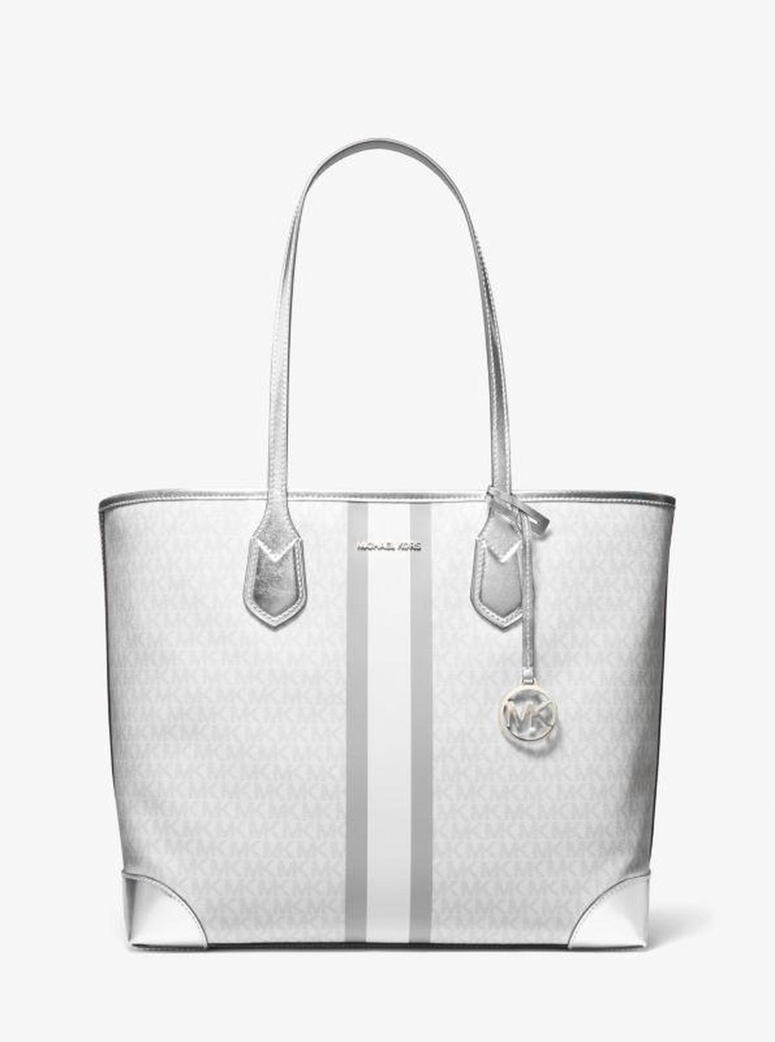 Eva Large Metallic Signature Logo Stripe Tote Bag