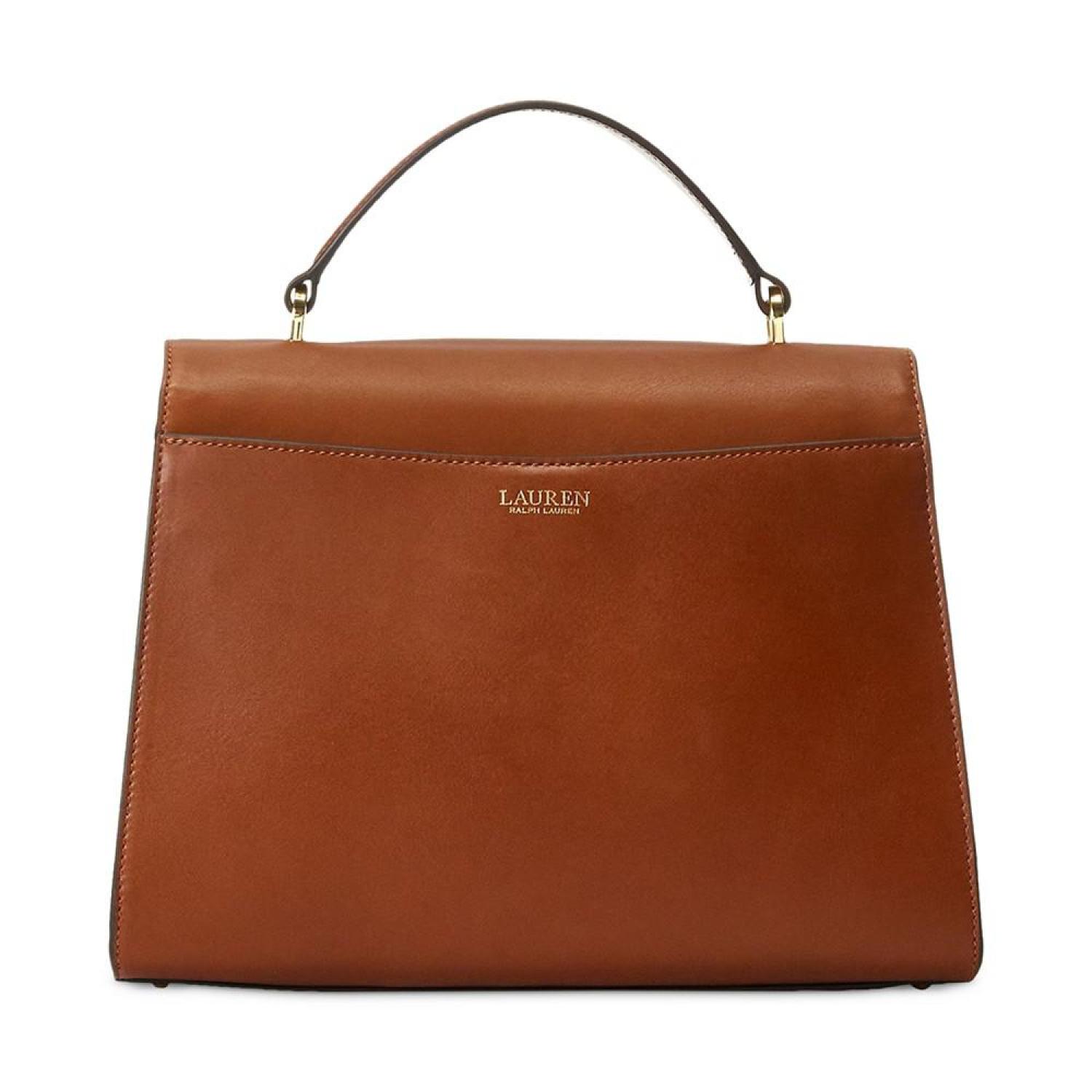 Presented in a flexible and refined silhouette, the Farrah by Ralph Lauren is a timeless satchel crafted from supple full-grain leather with a signature turn-lock closure for an iconic finish. Small sized bag; 10-1/2"W x 8-1/4"H x 4-1/2"D (width is measured across the bottom of handbag); 1.7 lbs. approx. weight Silhouette is based off 5'9" model 3"L top handle; 22-3/4"L removable, adjustable crossbody strap Polished "LRL" turn-lock closure Gold-tone hardware & exterior back slip pocket 2 interior zip pockets & 1 slip pocket Dust bag included Leather; lining: polyester Professional leather clean Imported