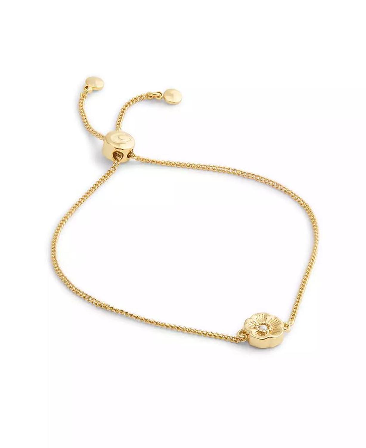 • Refined chain adjustable slider bracelet featuring signature tea rose adorned with delicate cultivated pearl at center.