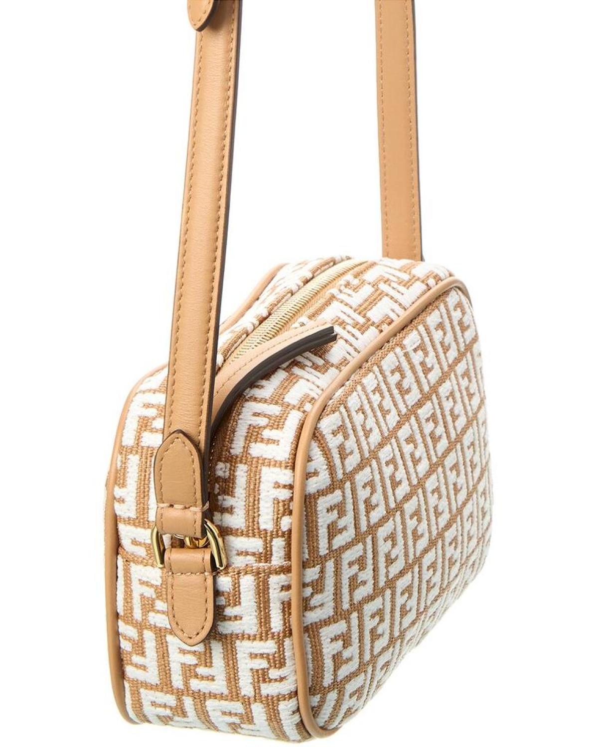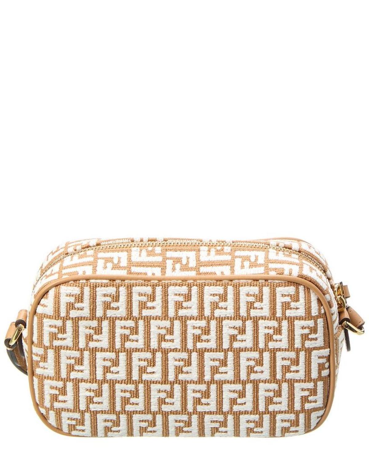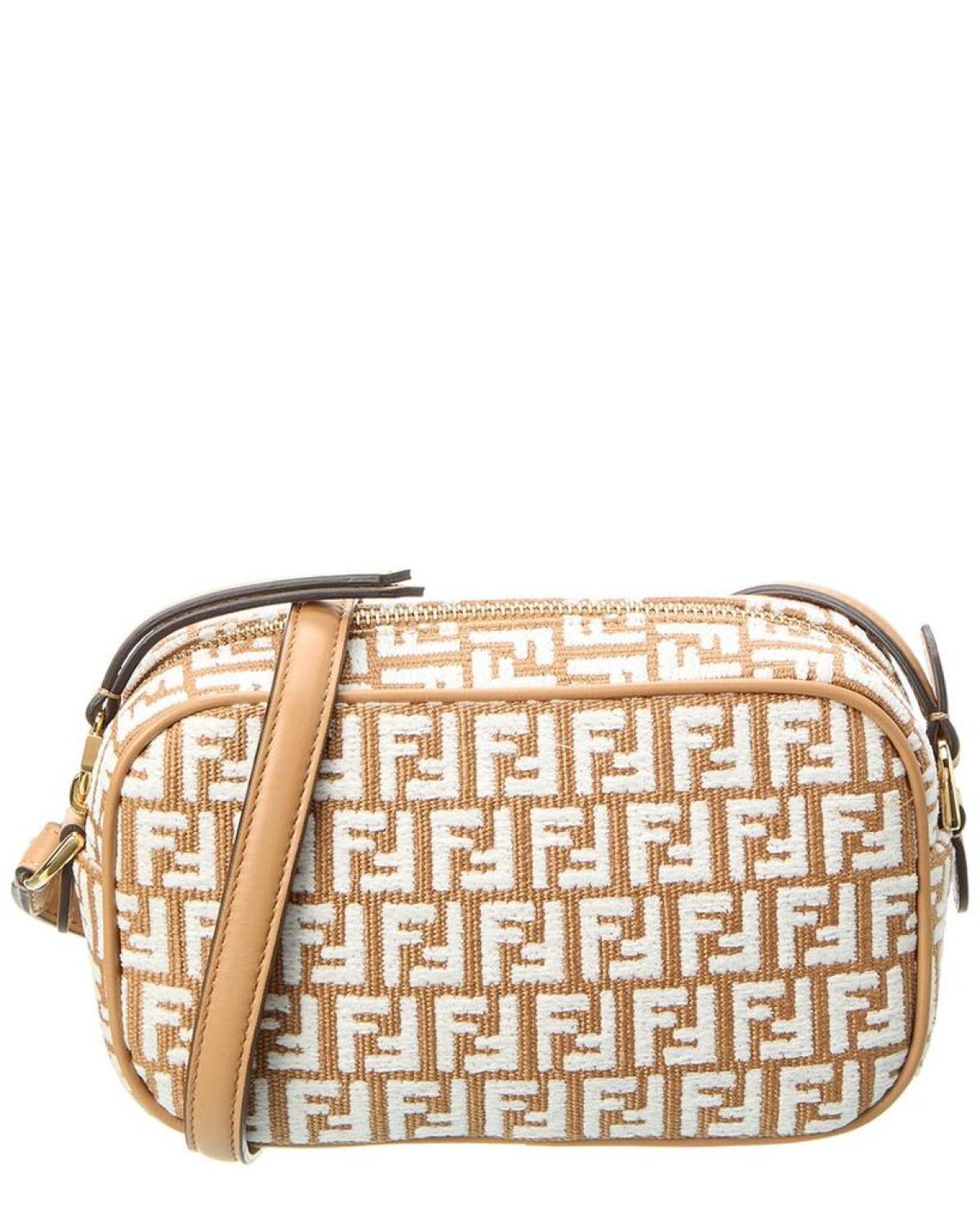 • Introducing the FENDI FF Mini Raffia & Leather Camera Bag, a stunning addition to our collection of women's handbags in the crossbody-bags category. Crafted by the renowned brand FENDI, known for its innovative and elegant Italian luxury, this bag is a true reflection of their expertise.Made in Italy, this FF Mini Leather Camera Bag combines the timeless appeal of brown and white FF raffia and leather, accentuated by gold-tone hardware. Its sleek design is complemented by an adjustable and removable shoulder strap, allowing you to customize the length to your preference, with a drop length of 23 inches.The interior of this bag is thoughtfully designed with an interior pocket, providing a convenient space to organize and secure your essentials. With measurements of 7.5 inches wide, 4.5 inches high, and 2.5 inches deep, this bag offers ample space without compromising on style.To ensure security, this bag is equipped with a zipper closure, safeguarding your belongings while adding a touch of sophistication. Please note that all measurements were taken by hand, and slight variations may occur, adding a unique touch to each individual piece.Rest assured that our products are 100% genuine. While we sometimes source merchandise from trusted independent suppliers rather than directly from the brand owner, we stand by the authenticity of every product sold on our site.Elevate your style with the FENDI FF Mini Raffia & Leather Camera Bag, a blend of Italian luxury and timeless design that is sure to turn heads wherever you go.