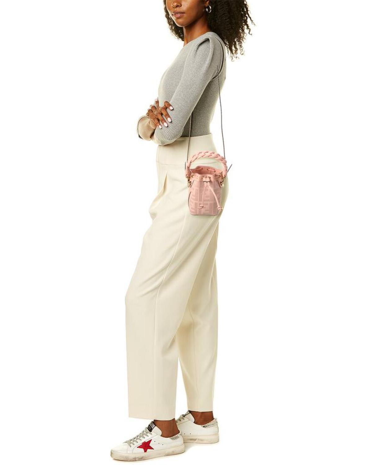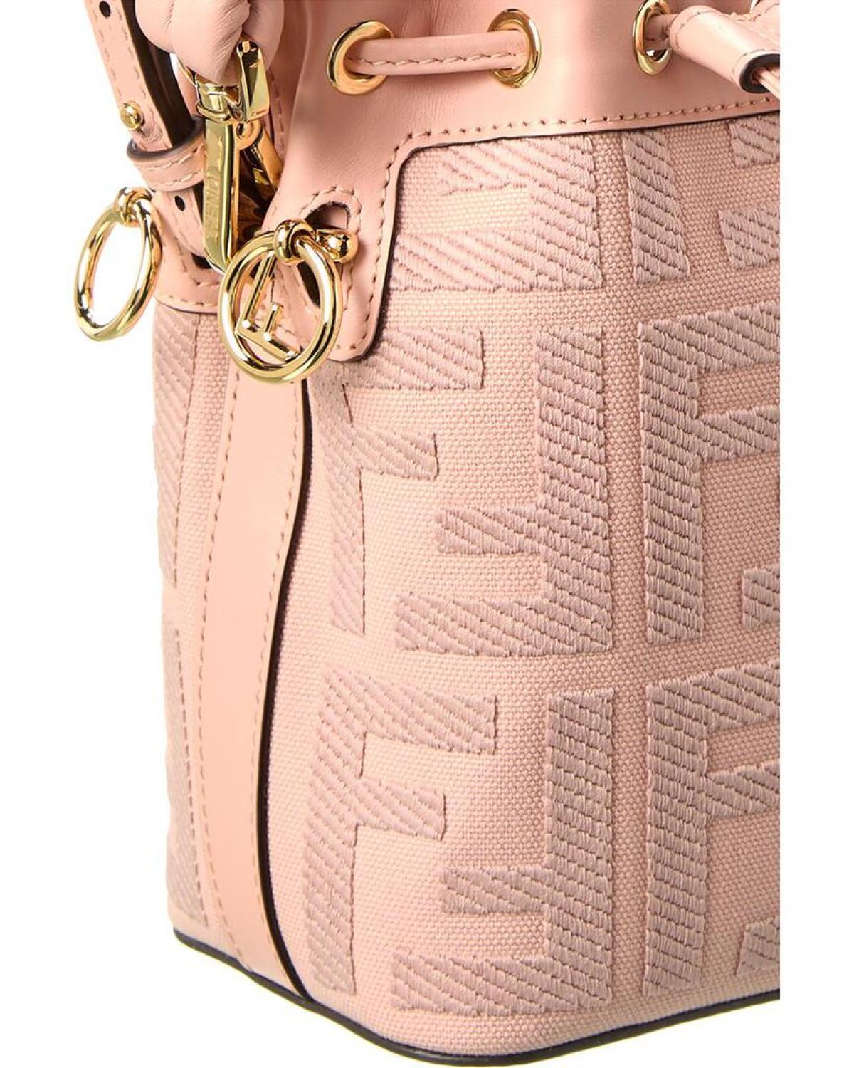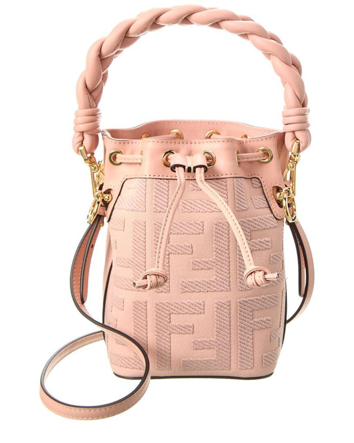 • Add a touch of timeless elegance to your wardrobe with the FENDI Mon Tresor Mini Canvas & Leather Bucket Bag. This stunning bag is guaranteed to arrive in time for Mother's Day and is the perfect gift for any stylish woman. Crafted by the innovative and elegant Italian luxury brand, FENDI, this bag is made in Italy to the highest standards of quality and craftsmanship.Featuring pink FF canvas and leather with gold-tone hardware and logo charm detailing, this bag is a true fashion statement. The braided handle and drawstring closure add a touch of vintage charm, while the removable shoulder strap drops 24 inches for versatile wear. The interior boasts a luxurious canvas lining and ample space for all your essentials. Measuring 5 inches wide by 7 inches high by 4.5 inches deep, this bag is the perfect size for everyday use.Please note that all measurements were taken by hand and are approximate; slight variations may occur. At our site, we stand by the authenticity of every product sold, but in some cases, we purchase merchandise from trusted independent suppliers and not directly from the brand owner. However, you can trust that this FENDI Mon Tresor Mini Canvas & Leather Bucket Bag is 100% genuine and of the highest quality.