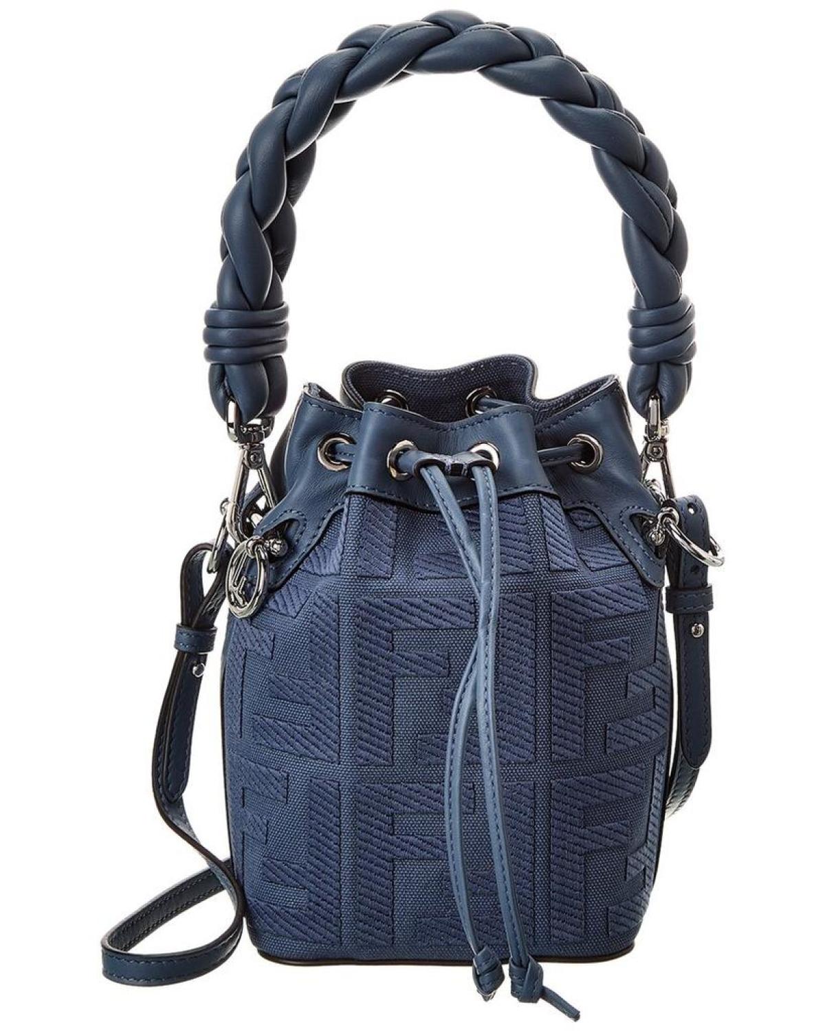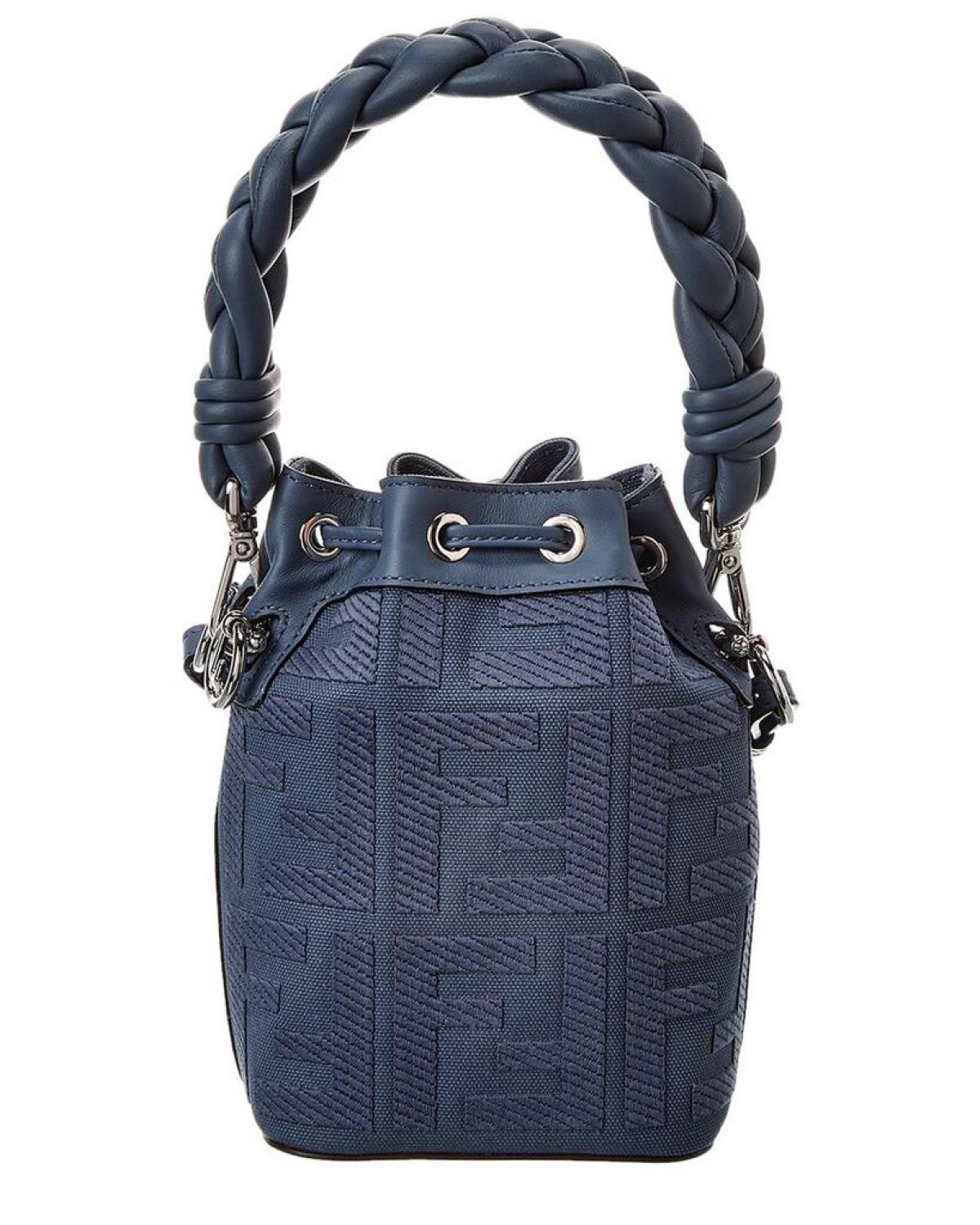 Introducing the FENDI Mon Tresor Mini FF Canvas & Leather Bucket Bag - the perfect addition to any fashion-forward woman's handbag collection. Made in Italy, this bucket bag showcases FENDI's innovative and elegant Italian luxury while exuding a unique charm with its blue FF canvas and leather and silver-tone hardware with an embroidered design and logo charm detailing. Featuring a practical and stylish canvas lining, the bag measures approximately 5 inches wide x 7 inches high x 4.5 inches deep, with a top handle dropping 7 inches and a removable shoulder strap dropping 24 inches. To keep your belongings secure, this bucket bag has a drawstring closure in place. Please note that all measurements were taken by hand and thus, slight variations may occur. However, we stand by the authenticity of our products and guarantee that they are 100% genuine. Even though, in some cases, we may purchase merchandise from trusted independent suppliers and not directly from the brand owner, we assure you that the product is of top-notch quality. Satisfy your thirst for fashion and functionality with the FENDI Mon Tresor Mini FF Canvas & Leather Bucket Bag, today!